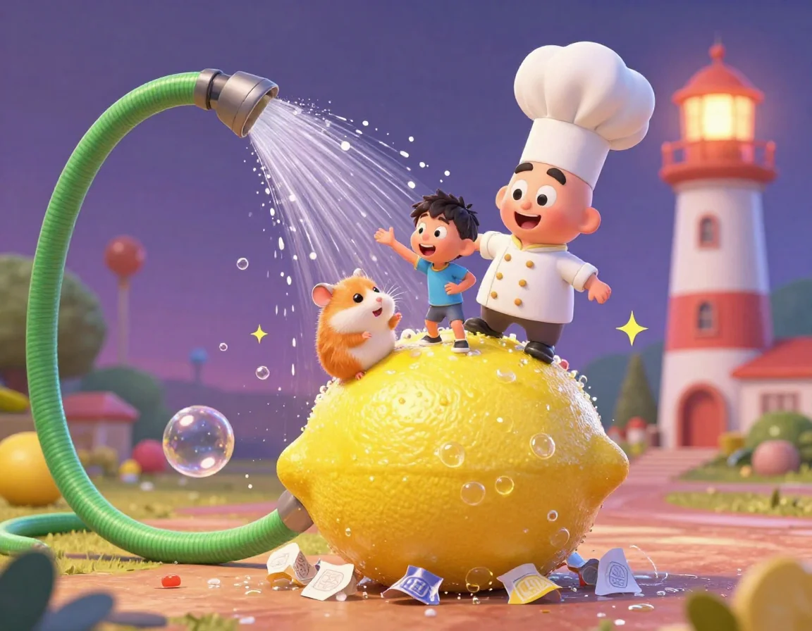 — Смотрите! — вдруг воскликнул Филимон, указывая на кусты роз. — Там, за Колючим Проливом, я вижу огни нашего праздника! Но путь преграждает Великая Лейка, из которой течёт Забытый Компот! Нам нужно проскочить мимо, пока она не устроила нам новый душ!