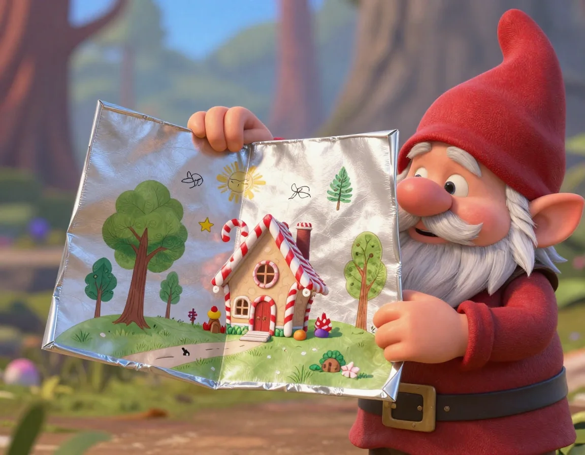 Мы торжественно проводили гнома на борт «Карамельной Мечты». Филимон важно уселся на носу корабля, прямо на голову мармеладному медведю, и достал из кармана старую карту, нарисованную на фольге от большой плитки шоколада. «Шурх-шурх!» — он разгладил её своими маленькими ручками.