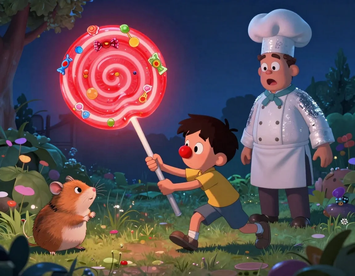 Вдруг впереди показалось нечто странное. Наш мармеладный маяк начал мигать розовым светом, а из-под крыльца послышался странный звук: «Хрум-хрум-чавк!». Кажется, кто-то решил перекусить нашими запасами печенья!