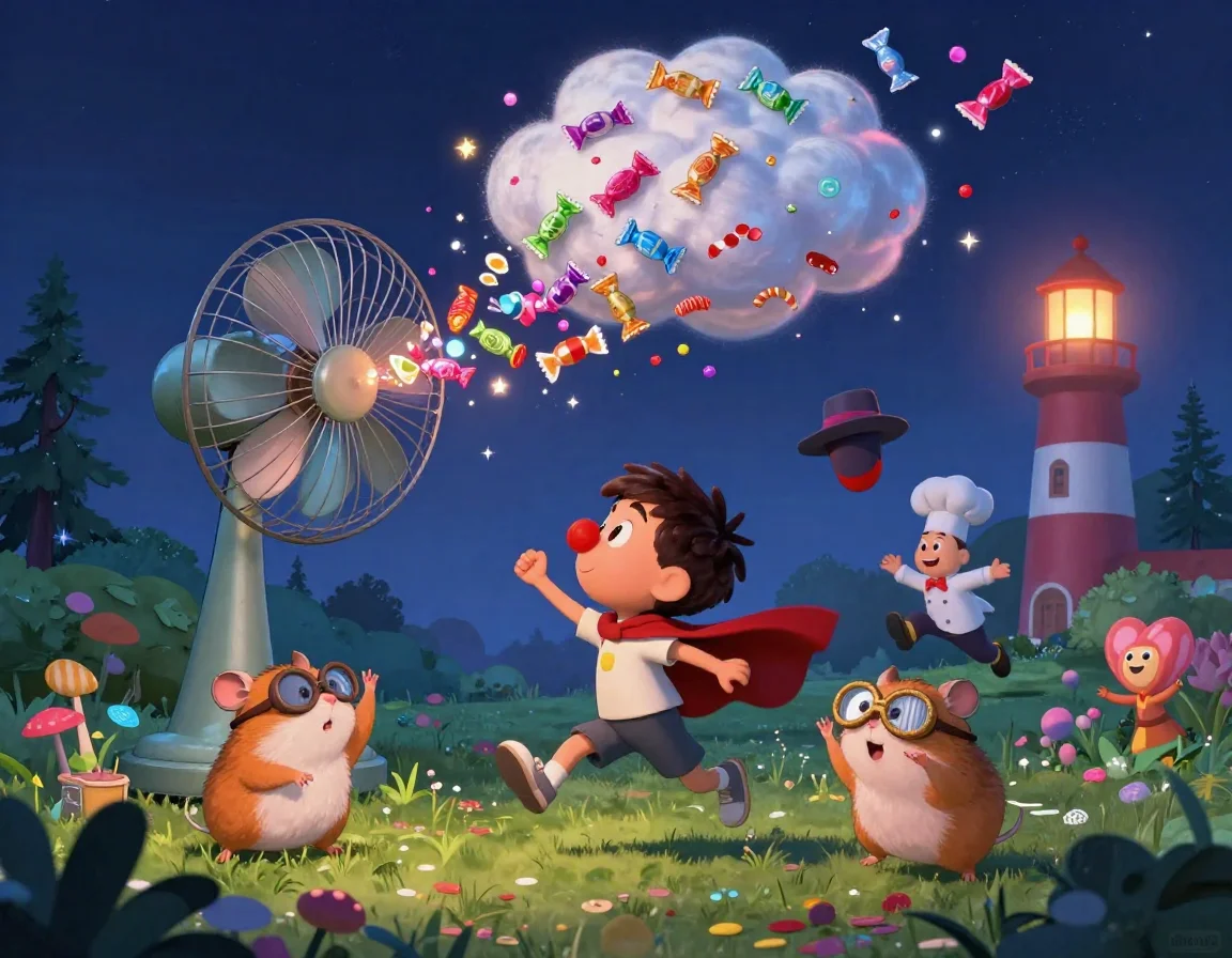 Утро в Смехово началось не с будильника, а с громкого «Пфффффух!». Мой чудо-пылесос за ночь перегрелся и выдал столько сахарной пудры, что весь двор бабушки Поли превратился в огромный батут из белых пушистых облаков!
