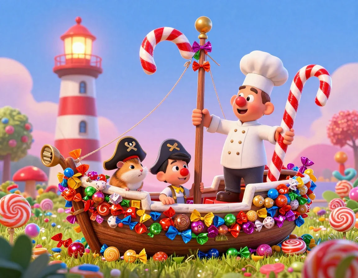 — Так, команда, слушай мою навигацию! — проскрипел гном. — Чтобы доплыть до Мармеладного Маяка и не застрять в зарослях Дикой Малины, нам нужно держать курс на Полярную Вишню! Барсик, лево руля! Мурка, подтяни сосисочные тросы!