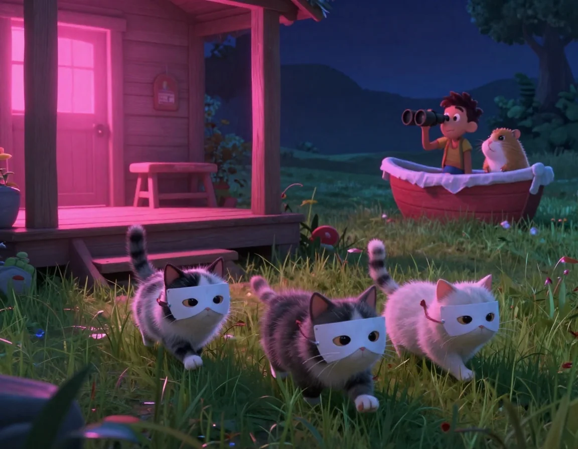 Ой-ой-ой! Время для секретной операции «Мягкие Лапки»! Коты — это же лучшие шпионы в мире: они умеют ходить тише, чем падает пушинка с одуванчика. Чих-Пых, выдай им приборы ночного видения (ну, или просто погладь за ушком для храбрости)!