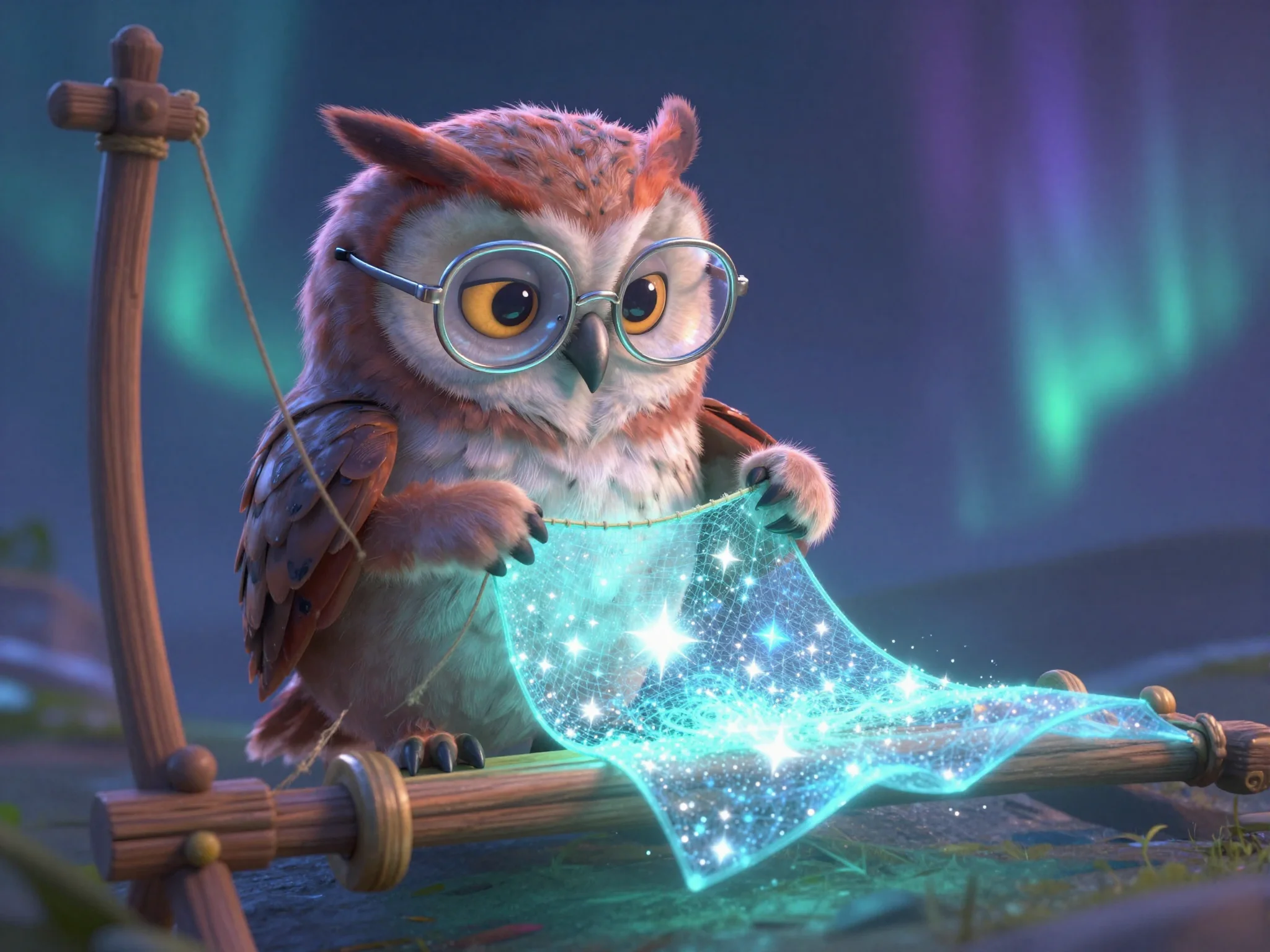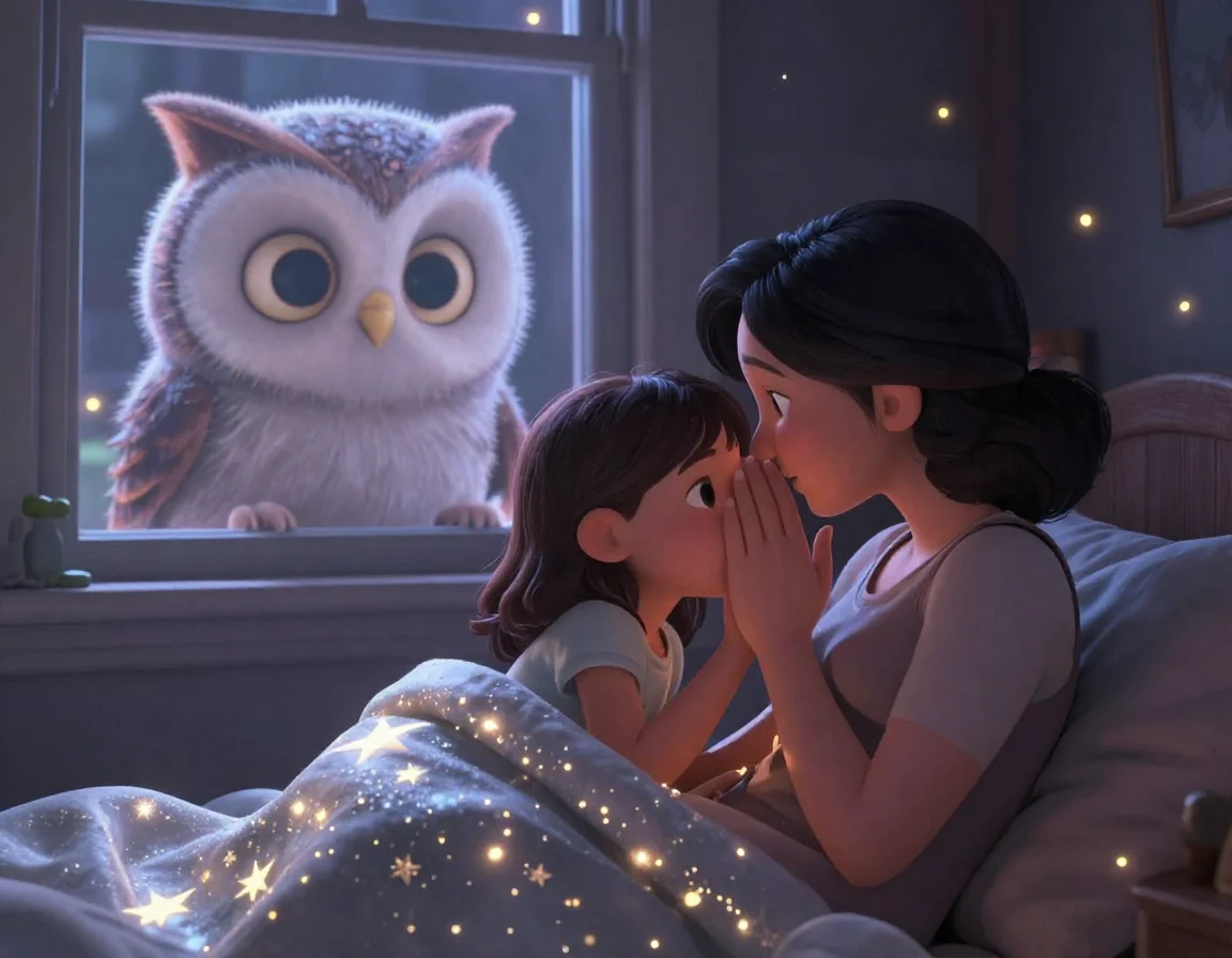 Тая, как настоящий лесной доктор, подошла к дереву. Она знала, что сейчас самое время для главного лекарства — заботы. Она начала доставать из корзинки светящиеся капли и бережно касаться ими каждого совёнка. Как только роса касалась их крылышек, совята сладко зевали, их глазки тяжелели, и они уютно прижимались друг к другу.