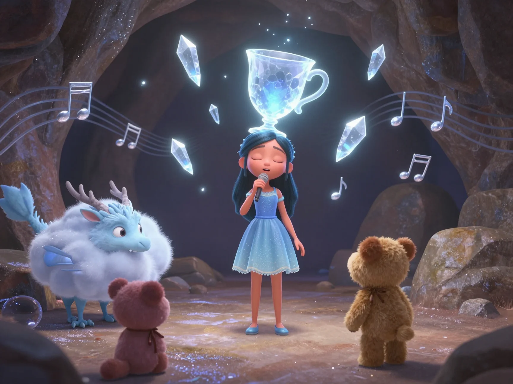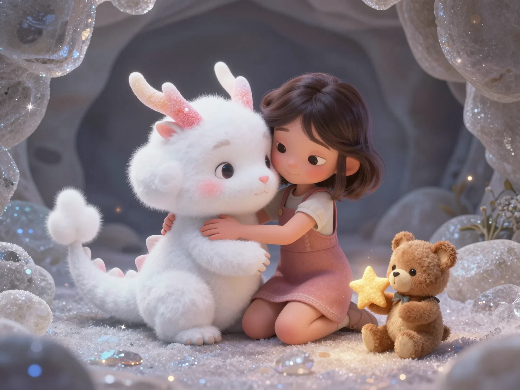 Под их общими объятиями серая преграда окончательно растаяла, открывая вход в Пещеру Эха. Но внутри было совсем темно, и только где-то в глубине мерцали крошечные, едва заметные искорки — это были те самые Краски Рассвета, запертые в прозрачные ледяные сферы.