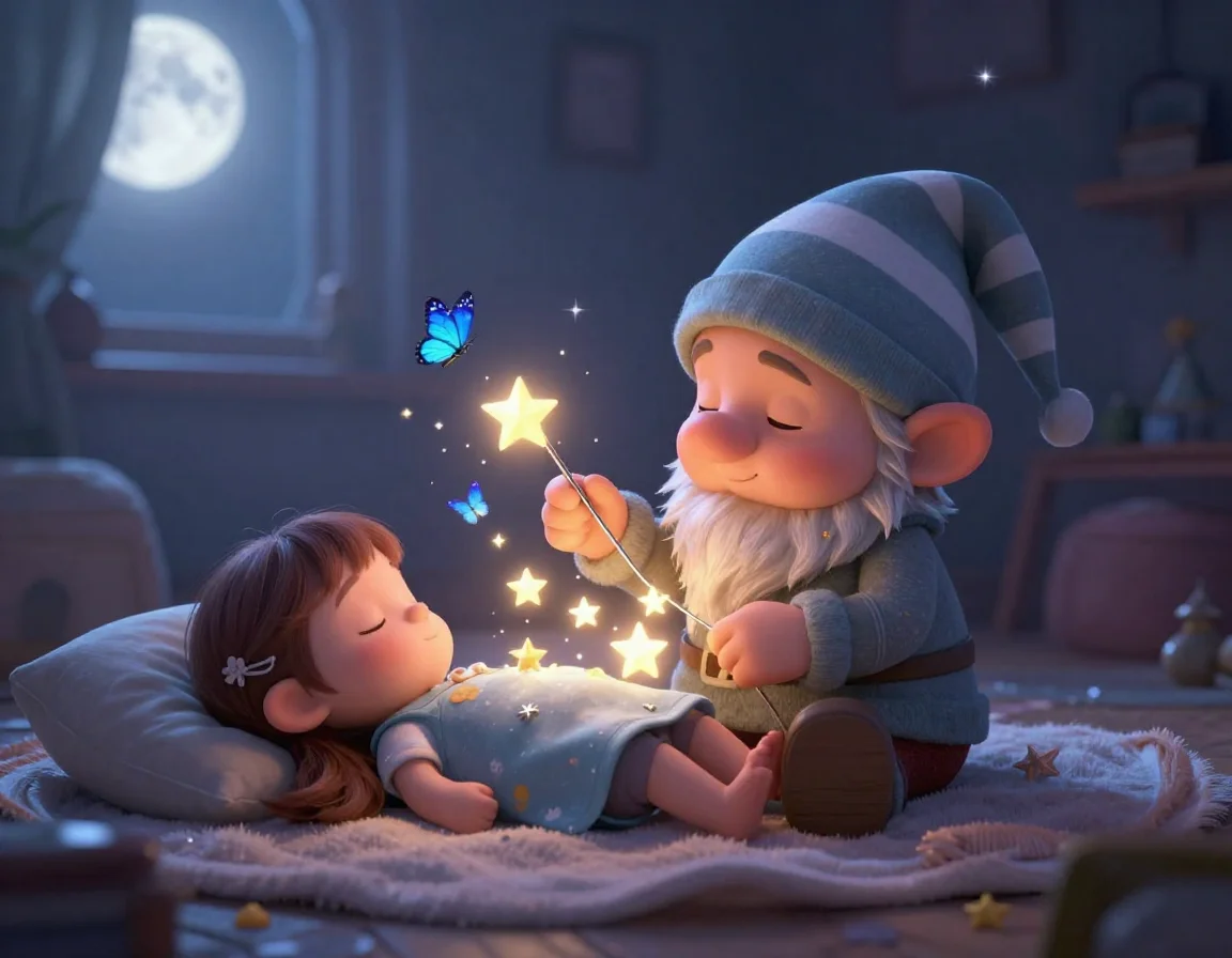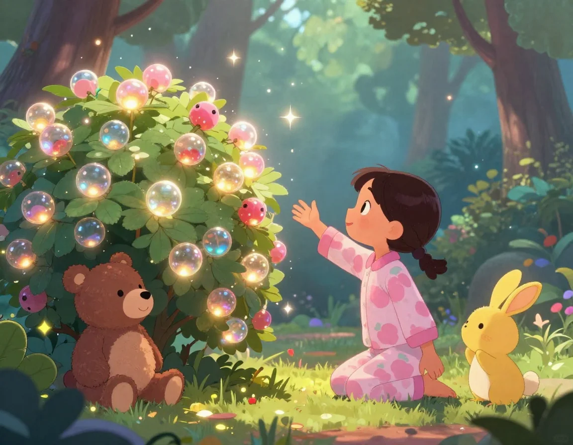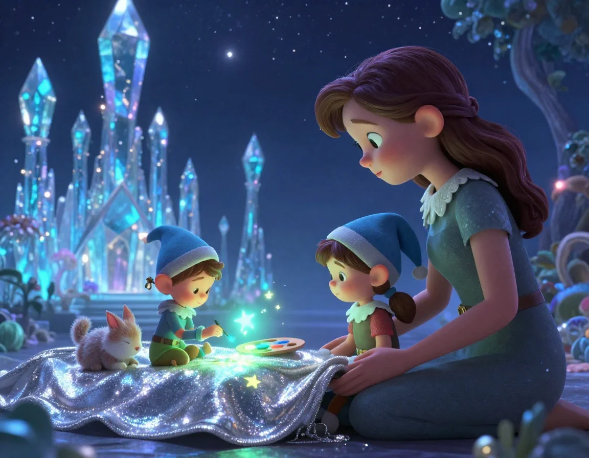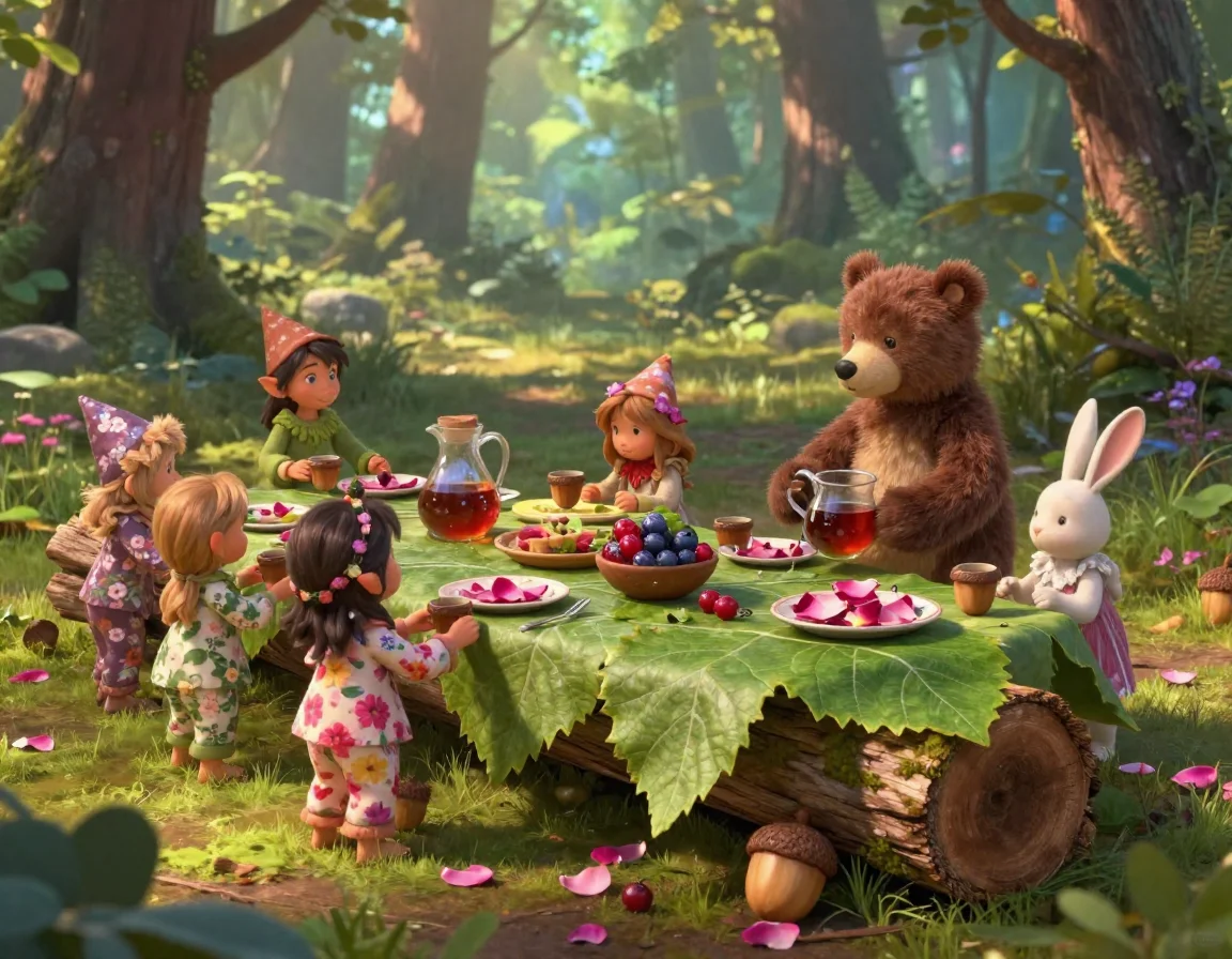 — Вот и всё, маленькие, — шептала Тая, поправляя воображаемые одеяльца из мягкого мха. — Теперь вам приснятся самые сладкие сны о черничных облаках и сахарных звёздах.