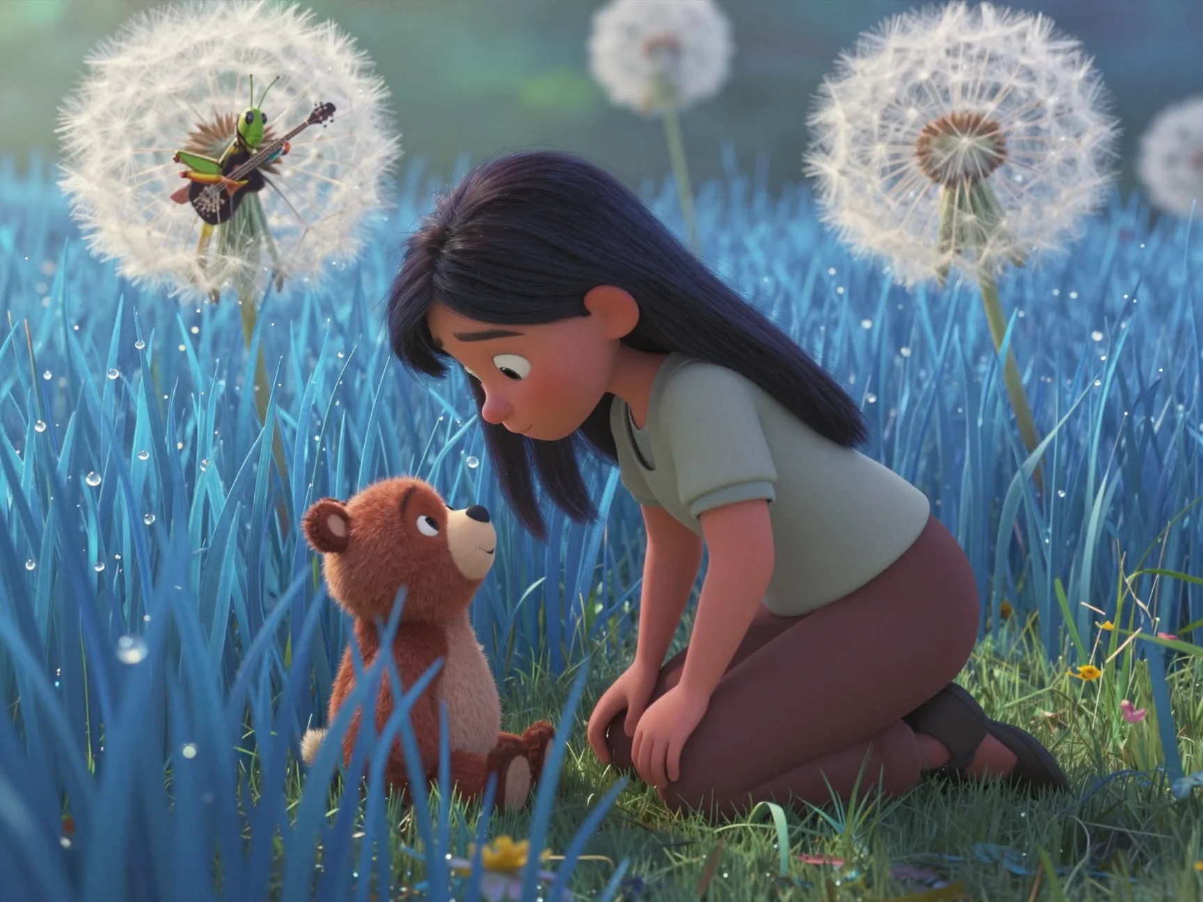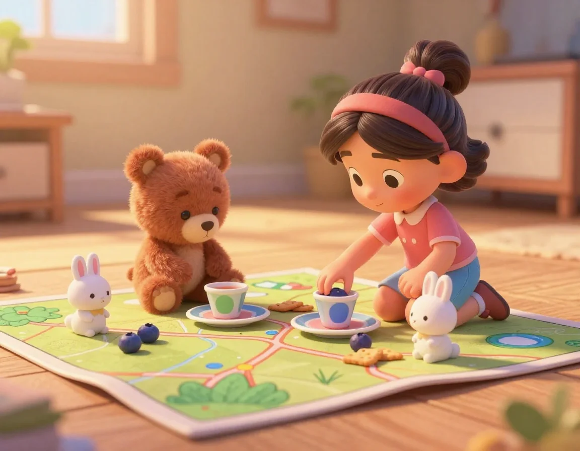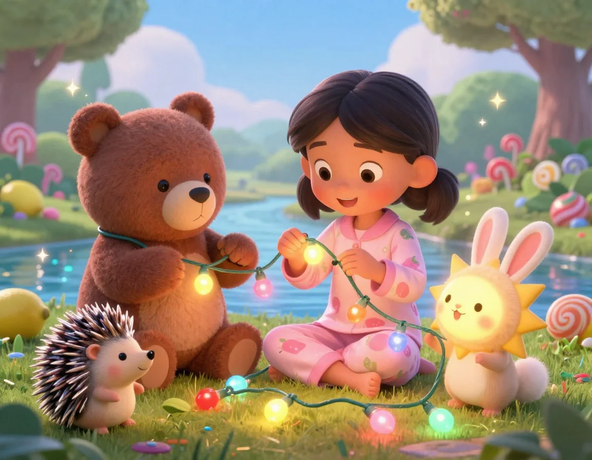 — Вот и всё, маленькие, — шептала Тая, поправляя воображаемые одеяльца из мягкого мха. — Теперь вам приснятся самые сладкие сны о черничных облаках и сахарных звёздах.