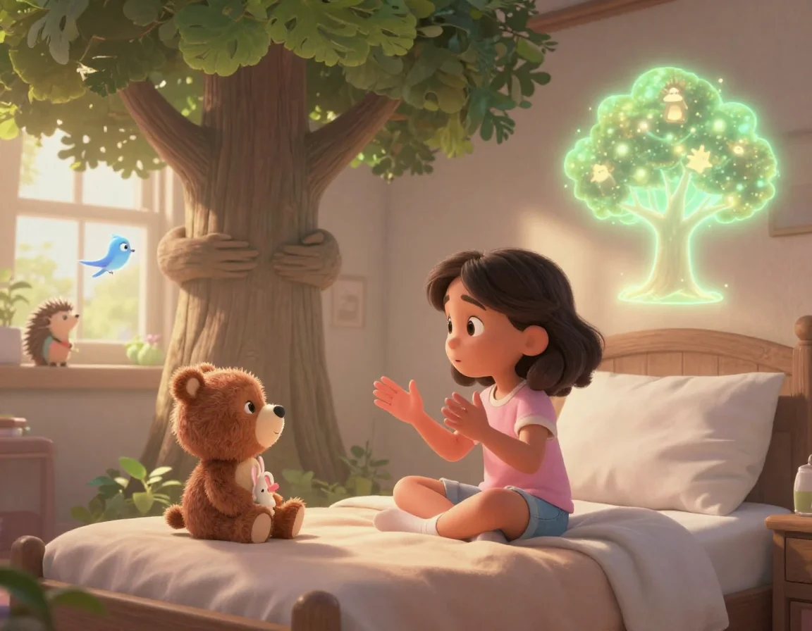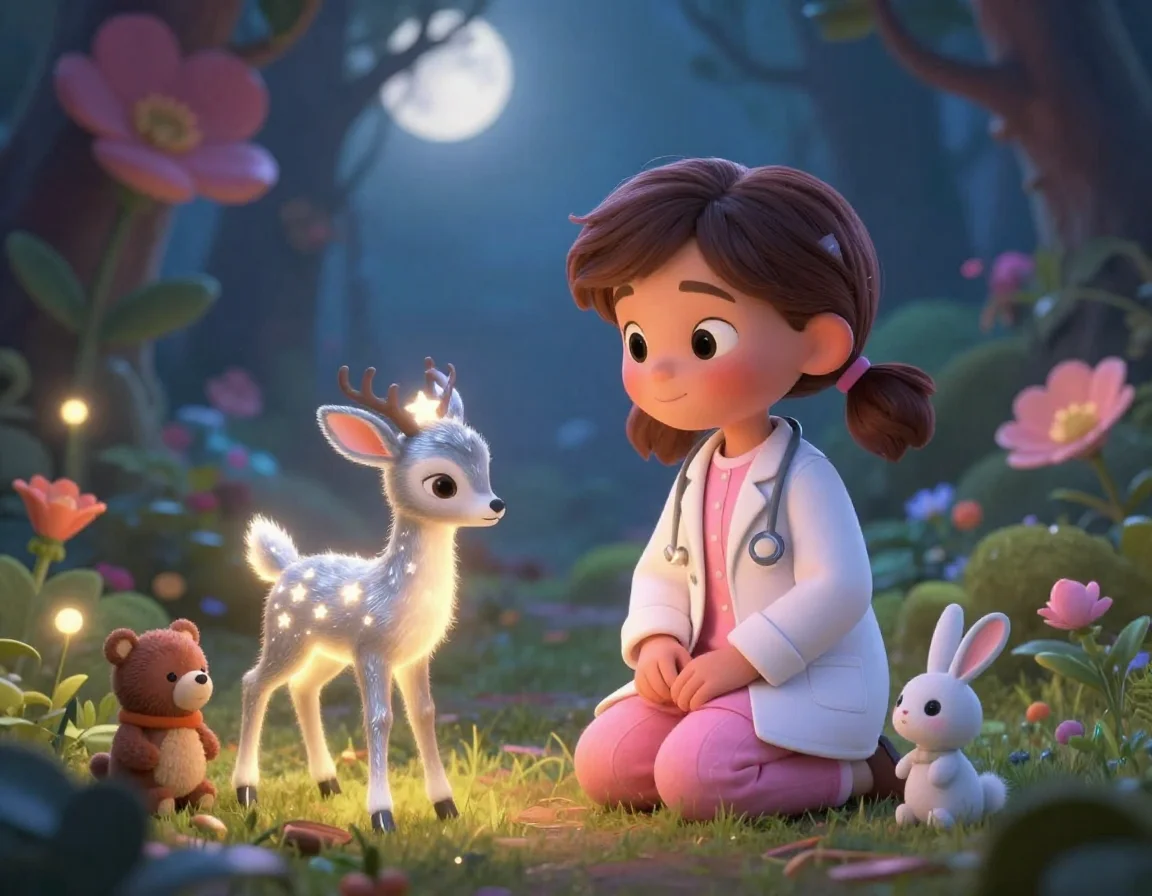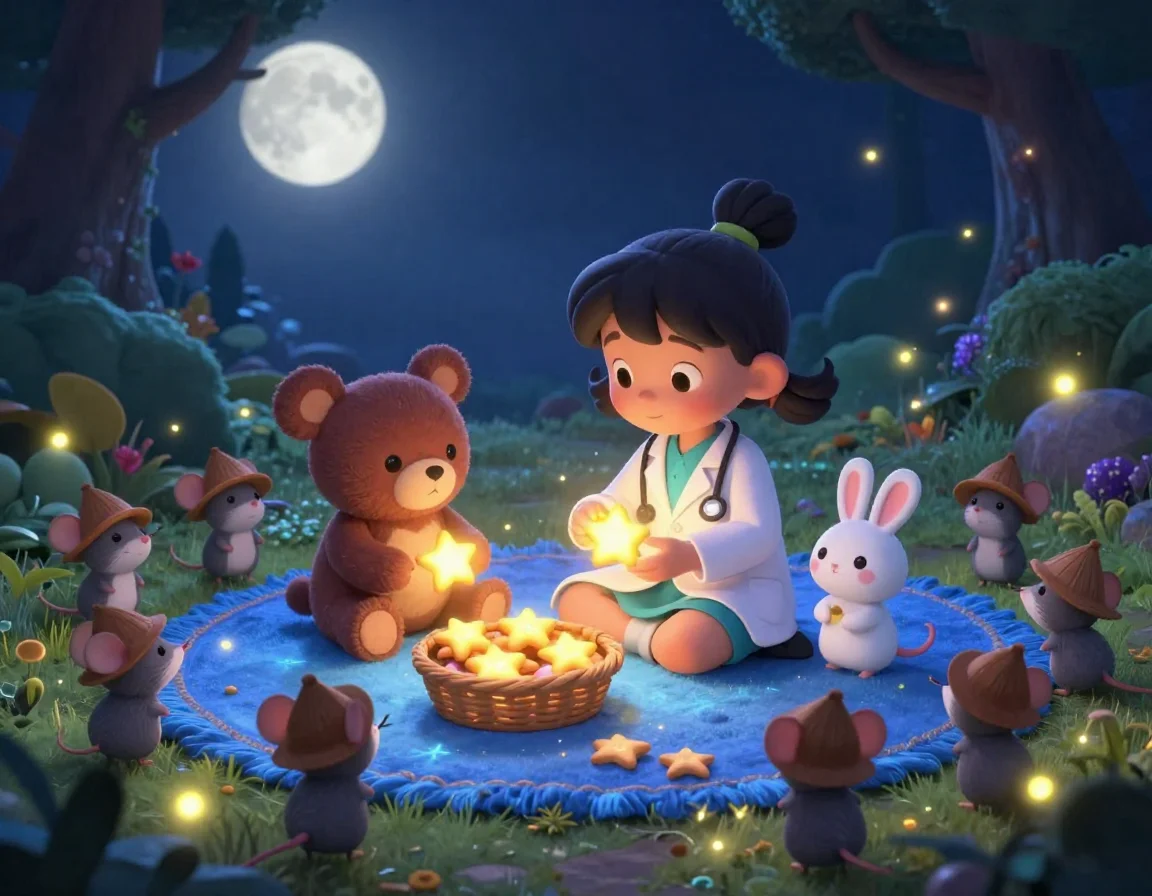 Тая всегда мечтала стать ветеринаром, но не обычным, а сказочным. Она знала, что лечить нужно не только лапки, но и грустное настроение. Вдруг лапа Потапа мягко шевельнулась, и он ответил тихим, как шуршание листвы, голосом: