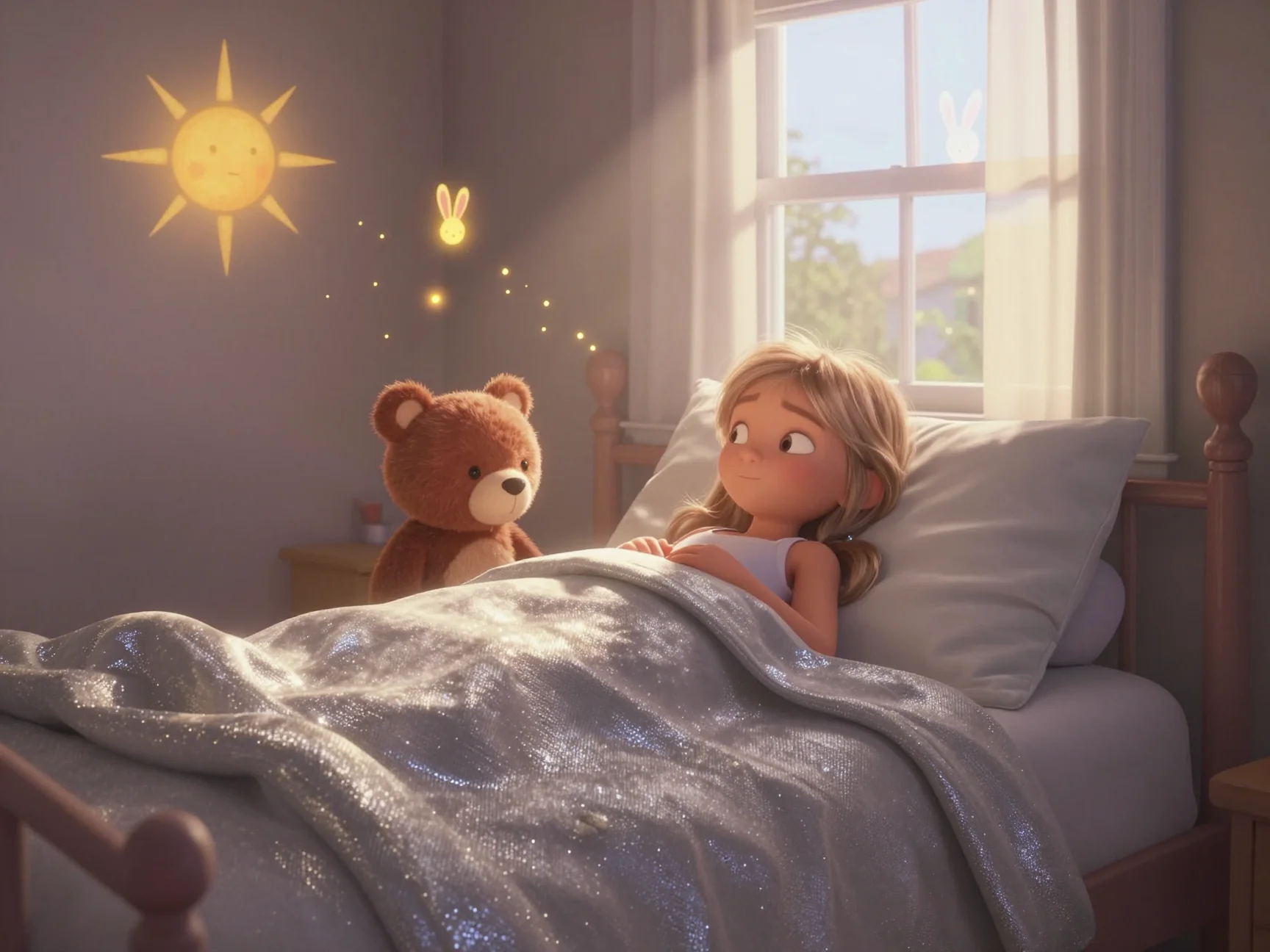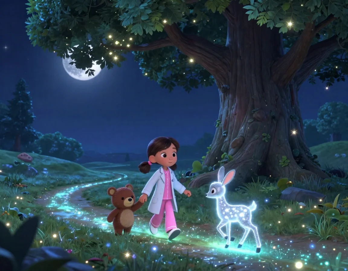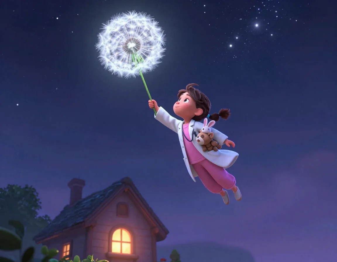 Тая спрыгнула с кровати. На ней были её любимые пушистые тапочки, которые, как она верила, умели бесшумно ходить по облакам. Она взяла свой игрушечный стетоскоп, который в её руках превращался в магический прибор для прослушивания снов, и посмотрела в окно. Там, за стеклом, обычный сад превращался в светящийся лабиринт. Деревья мягко покачивали ветвями, приглашая её в путь.