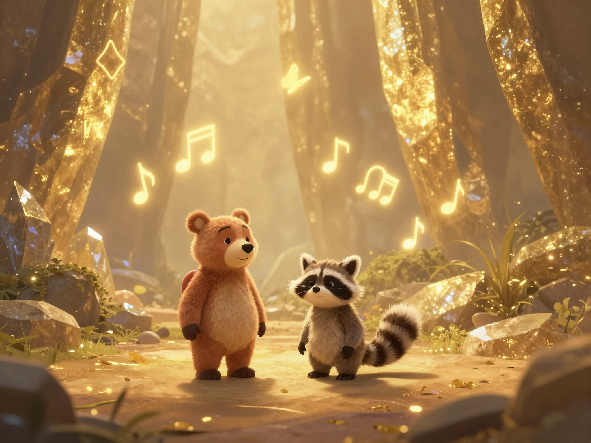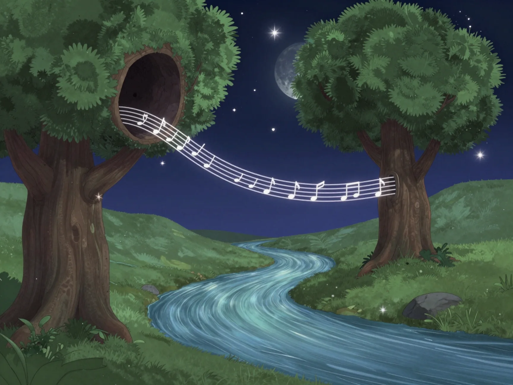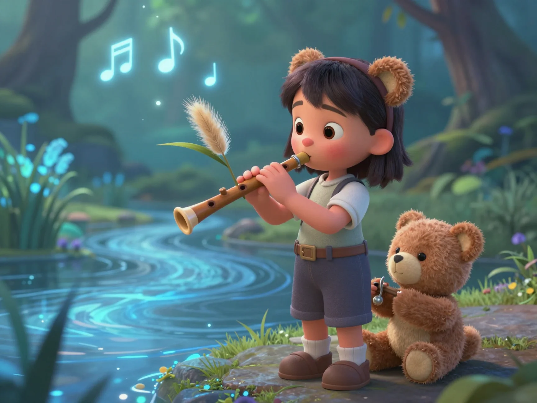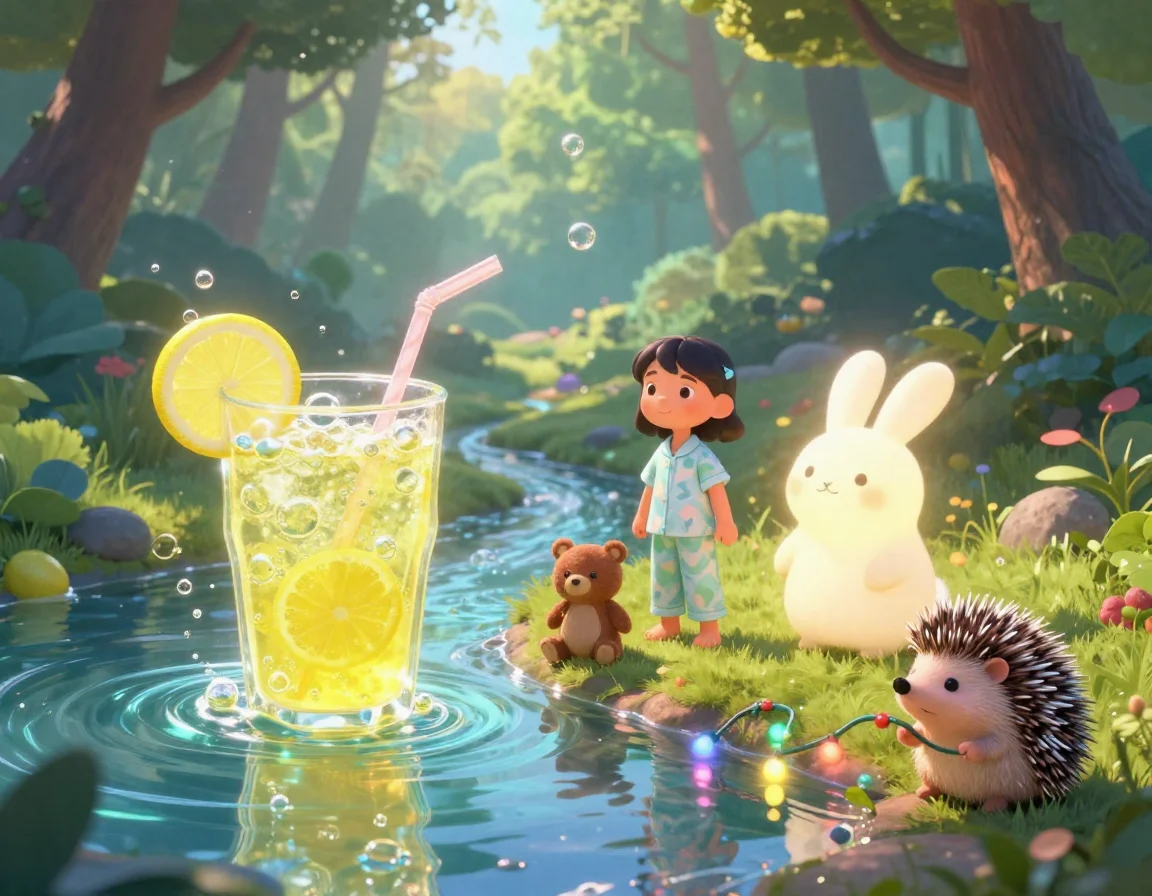 Тая начала тихо напевать мелодию, похожую на звон маленьких колокольчиков. Потап подхватил басом, а Лисёнок сначала робко, а потом всё увереннее начал подтягивать своим тоненьким голоском. И тут произошло чудо! Вода в ручье вдруг вспыхнула нежно-голубым светом. Маленькие пузырьки начали подниматься на поверхность, и каждый из них нёс в себе искорку смеха.