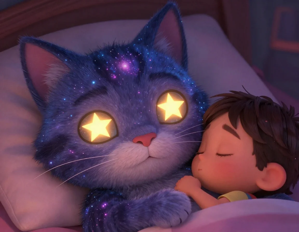Он широко раскрыл свои пушистые лапы и крепко-крепко прижался к холодной преграде. Его золотая звёздочка на шее вспыхнула ярким, жарким светом, похожим на маленькое солнышко. Сначала ничего не происходило, но потом послышалось тихое «пш-ш-ш». Ледяные нити начали таять, превращаясь в мягкий, тёплый пар, пахнущий ванилью и парным молоком.