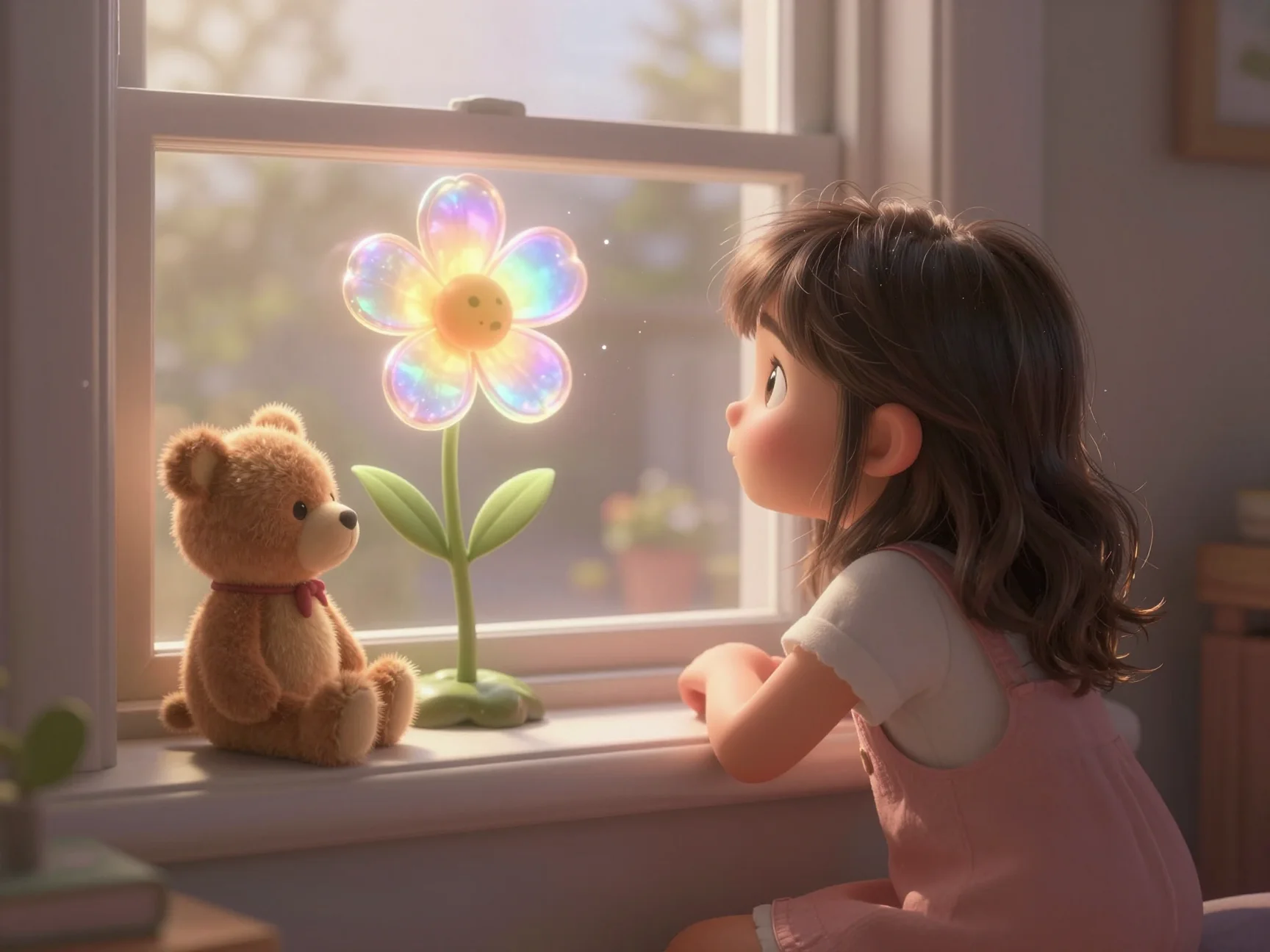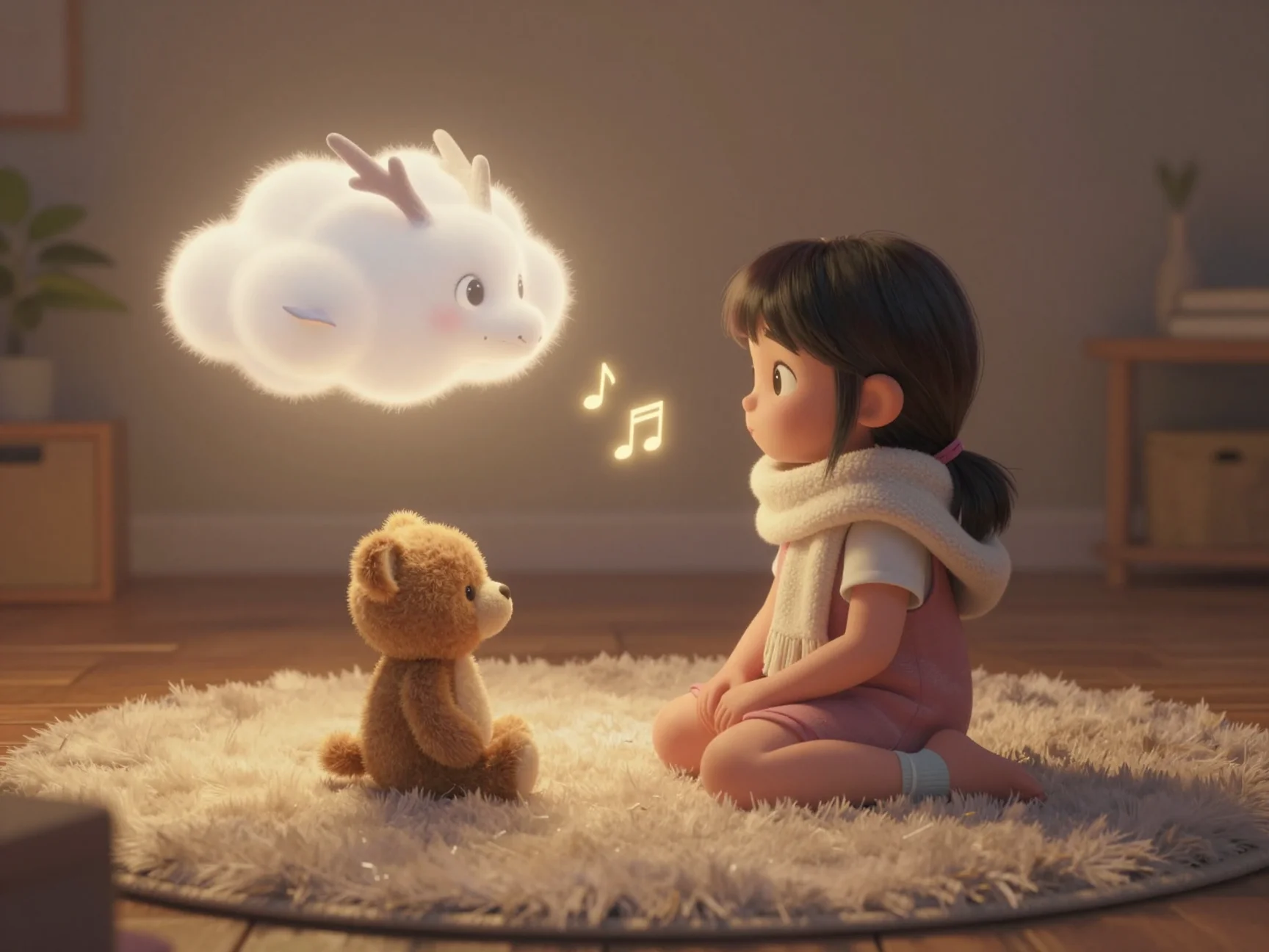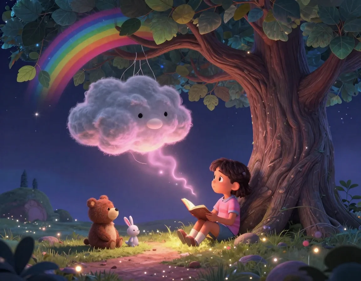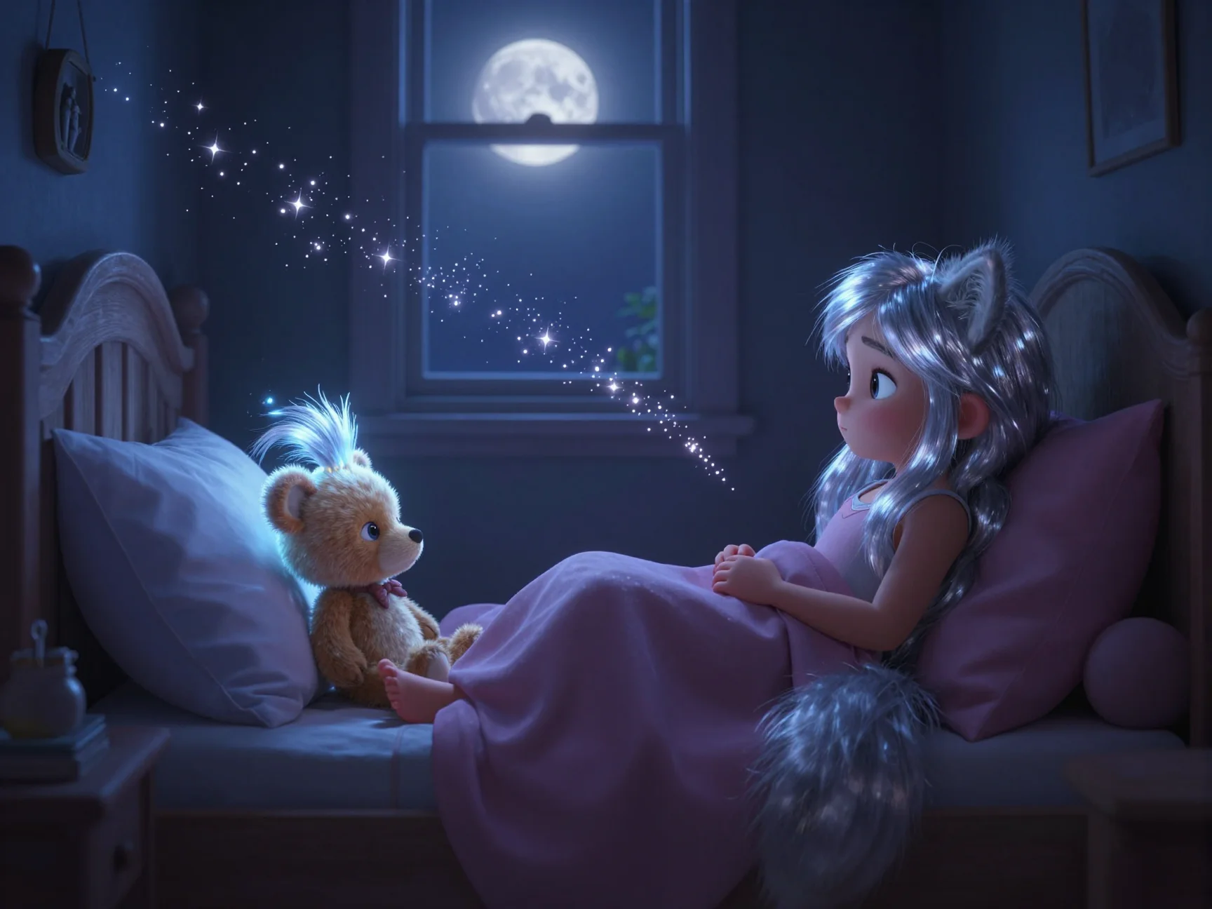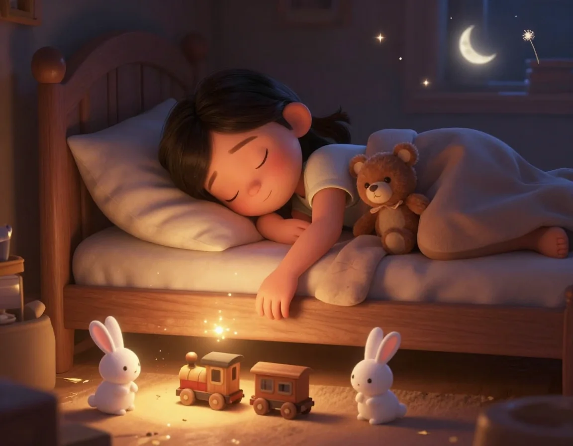 В тот вечер комната шестилетней Таи была наполнена особенным, серебристым светом. Тая не просто готовилась ко сну — она знала, что каждый предмет в её комнате ждёт ночи, чтобы поделиться своими секретами. Для взрослых это были просто игрушки, но Тая видела, как старый плюшевый Мишка по имени Потап поправляет свой воображаемый галстук, а тряпичный Зайка подмигивает ей длинным ушком.