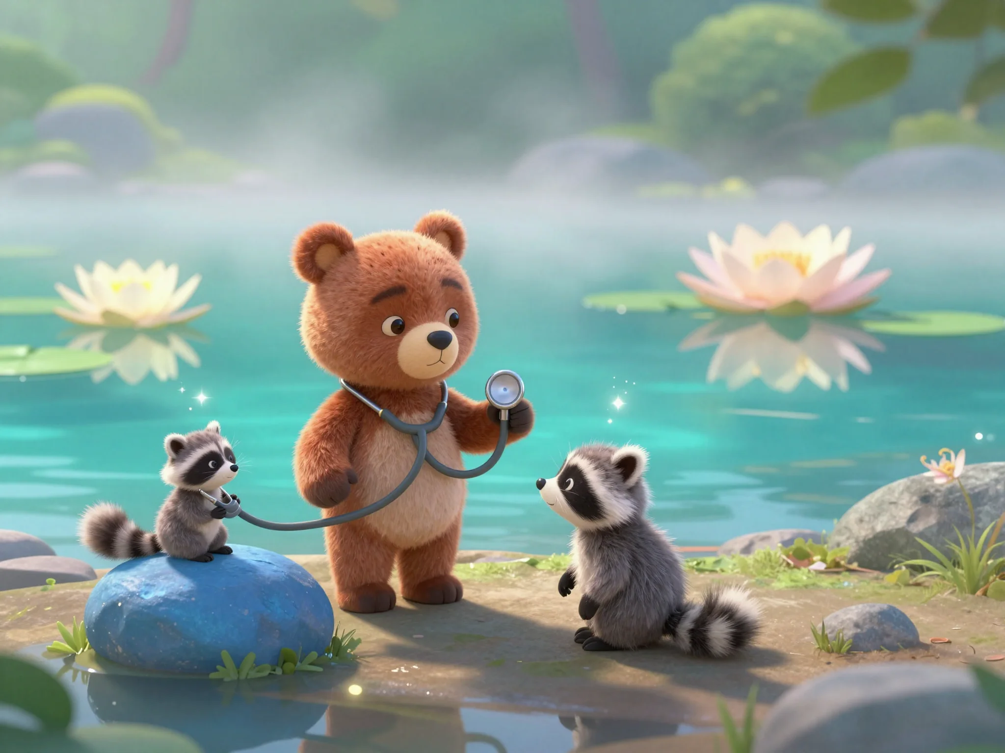 Тая приложила свой стетоскоп к лапке Енота. Она услышала, как внутри него бьётся маленькое, доброе сердце, но оно звучало очень тихо, будто ему не хватало искорки задора.