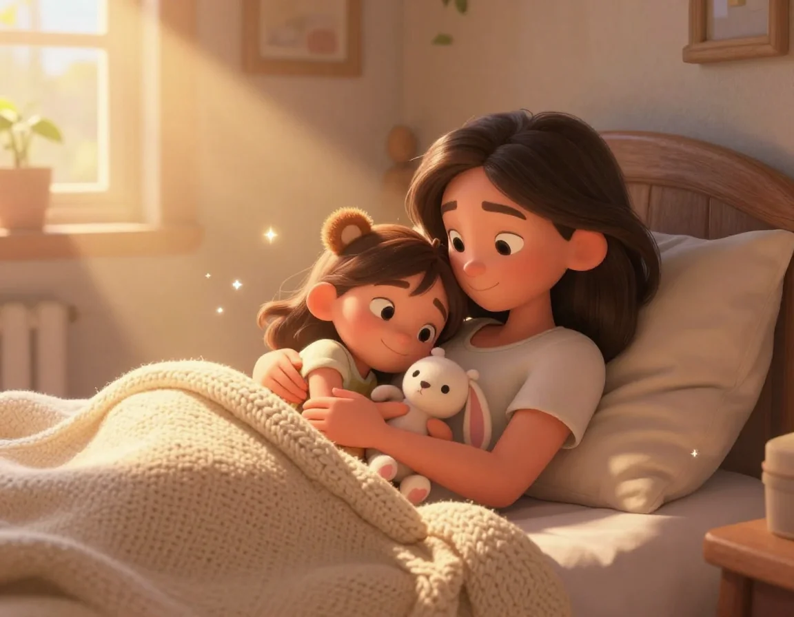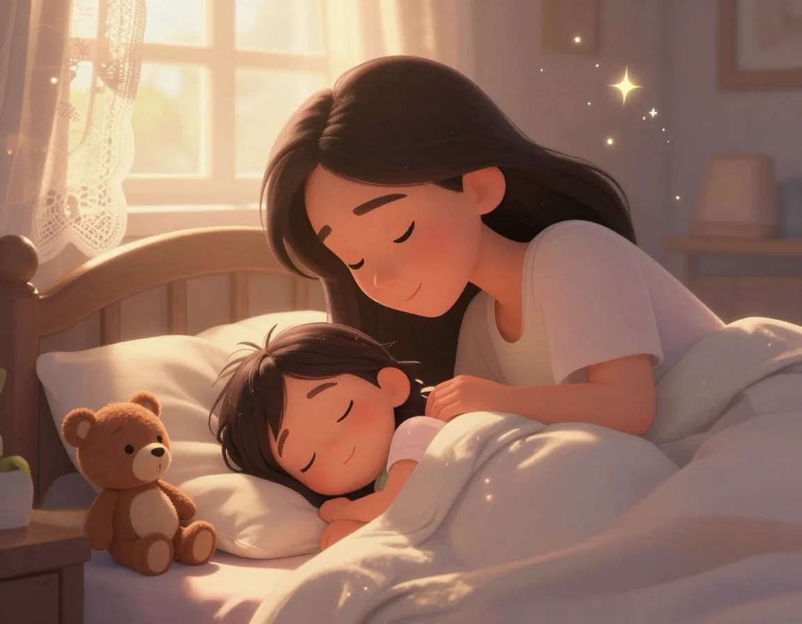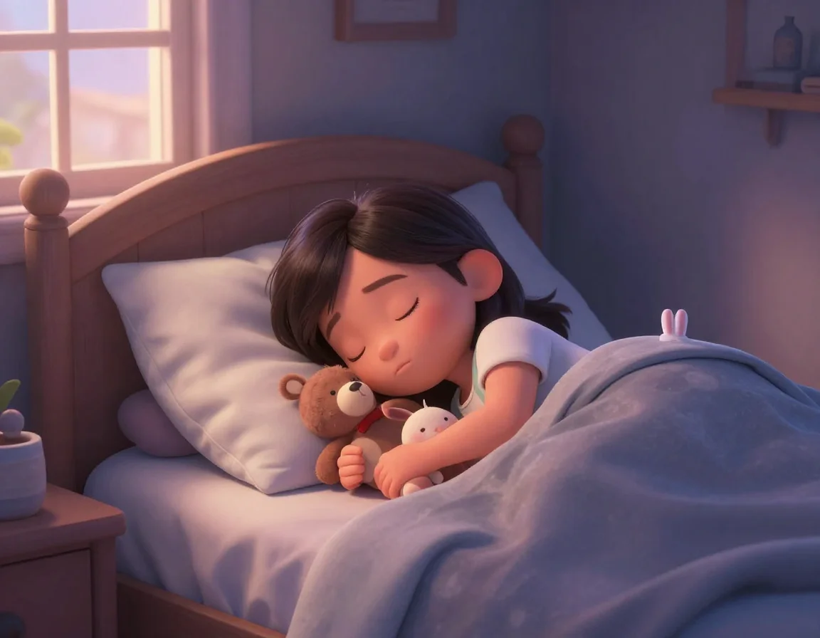 Когда Тая оказалась в своей тёплой кроватке, она почувствовала, как одеяло нежно обнимает её, а подушка шепчет сказку. Она закрыла глазки, зная, что её друзья — и настоящие, и игрушечные — всегда будут рядом, охраняя её покой.