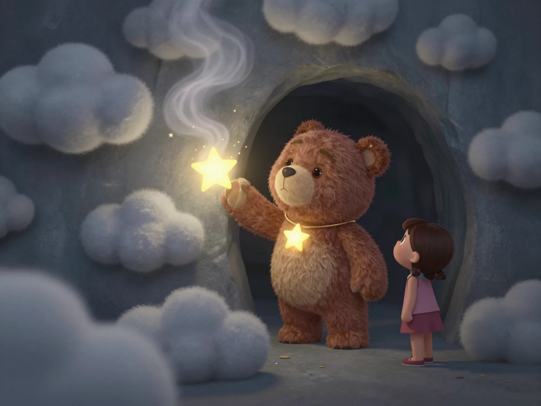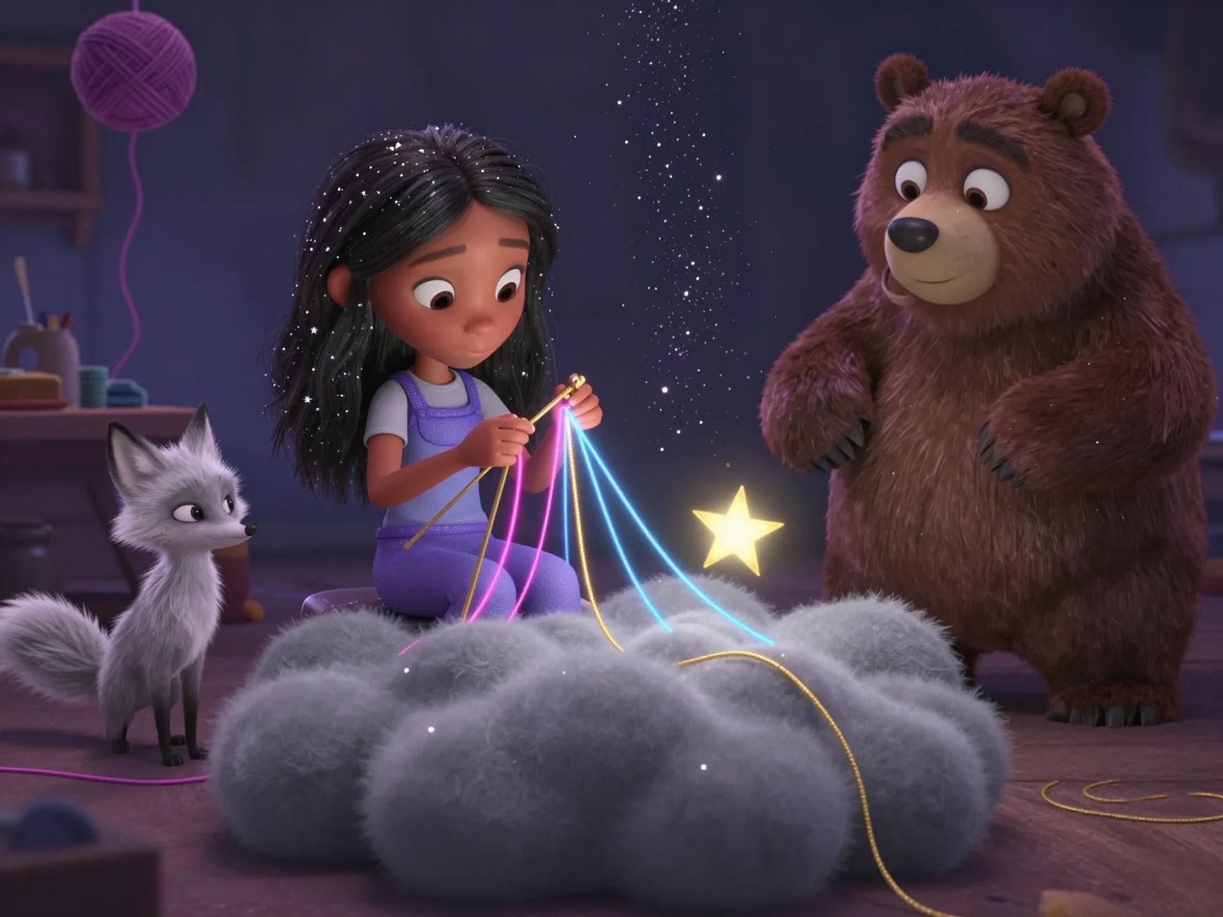 — Ой, — Тая спрыгнула с кровати, её пижама мгновенно превратилась в платье из мягкого лебяжьего пуха. — Мы должны помочь! Потап, бери свой фонарик!