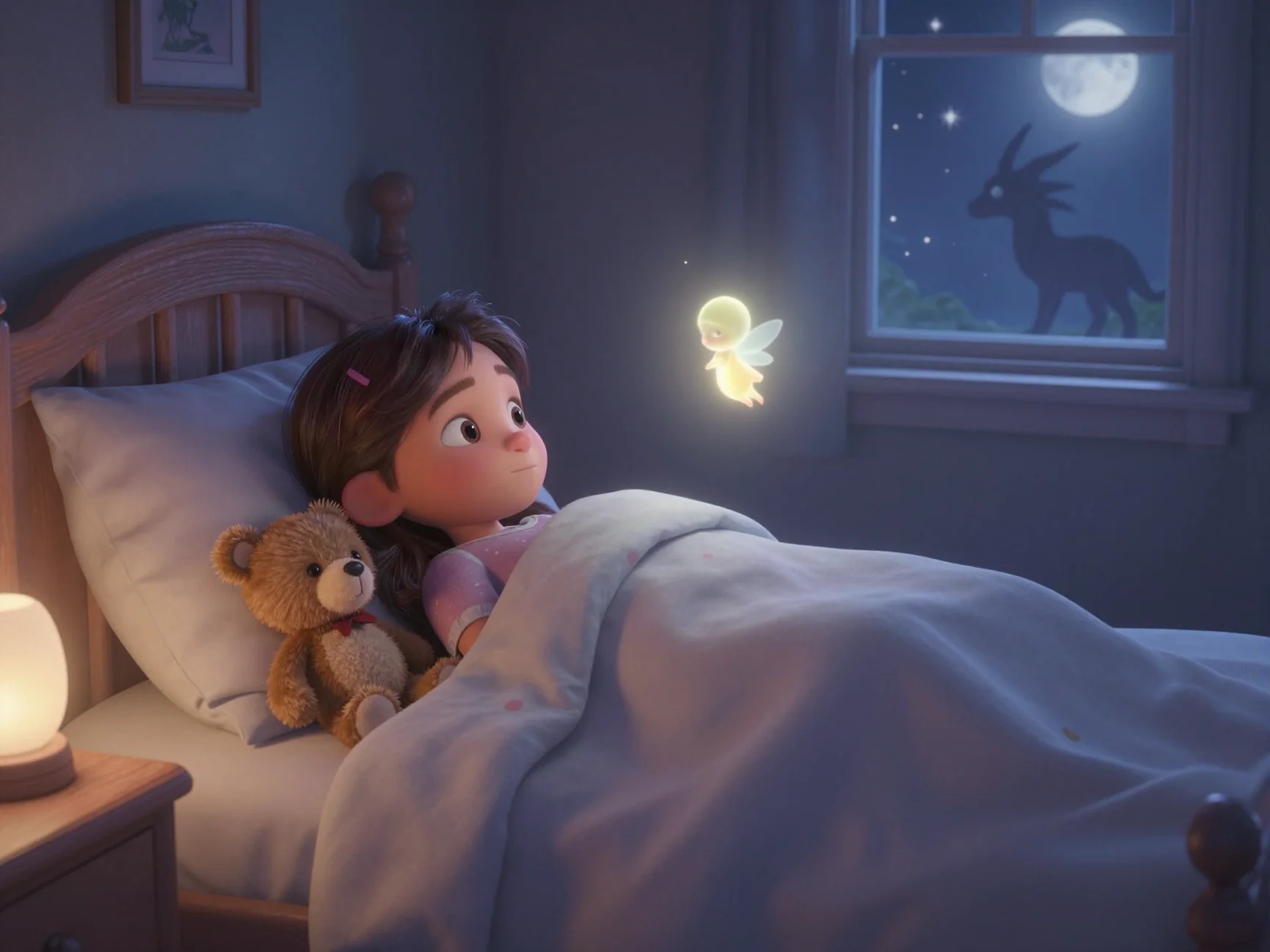 Здравствуй, милая Тая! Я — фея Луна. Мой фонарик сегодня светит особенно мягко, приглашая тебя в мир добрых грёз. Я знаю, как сильно ты любишь зверят и как чутко твоё сердечко слышит шёпот звёзд. Давай устроимся поудобнее под тёплым одеялом, и я расскажу тебе историю о твоём самом волшебном приключении.