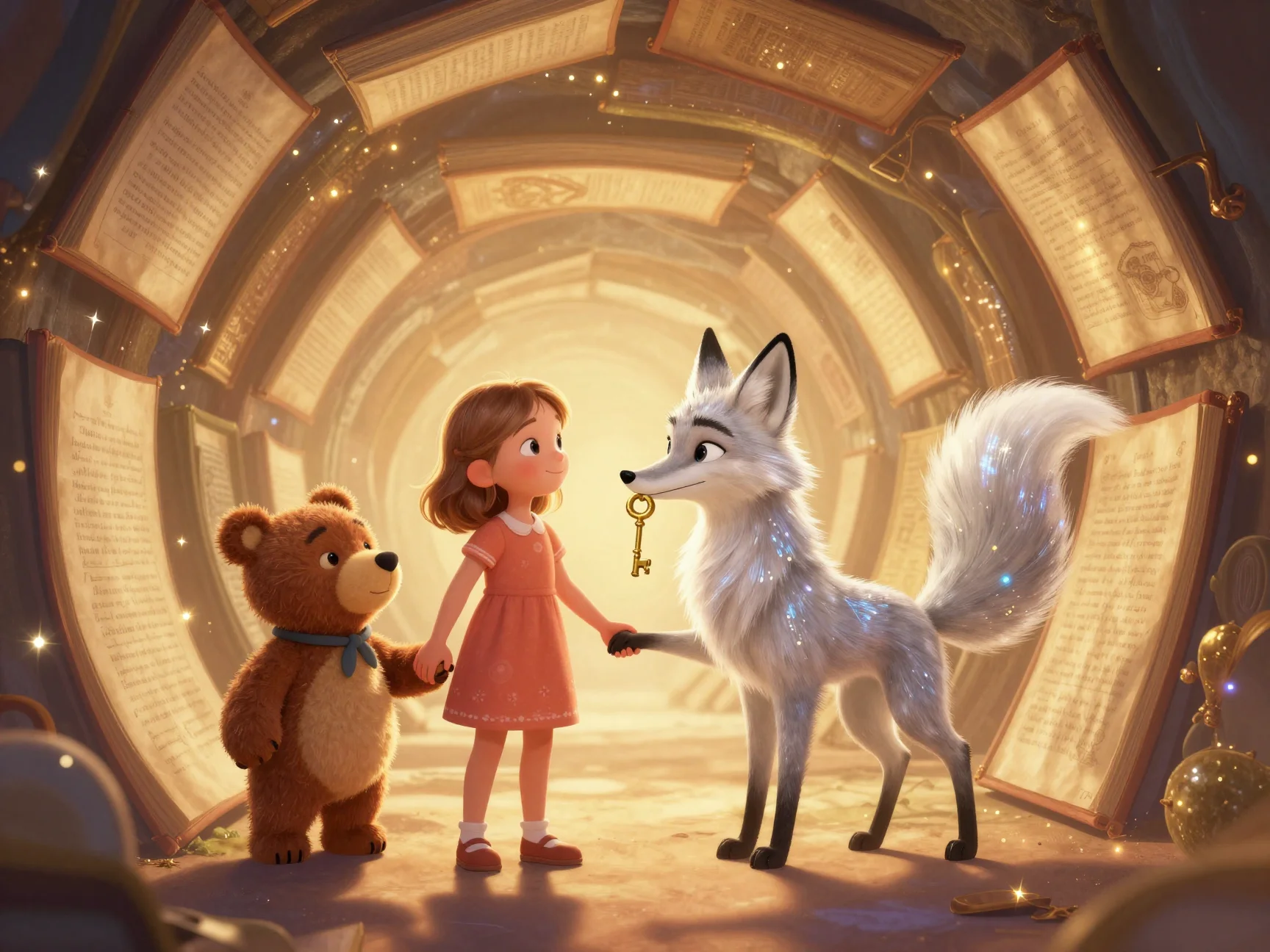 — Ну что же, друзья, — сказал он, указывая на приоткрытую дверцу, откуда всё громче доносилось «тик-так, тик-так». — Теперь мы полны сил. Пора заглянуть в Хранилище Потерянного Времени. Но будьте осторожны: там время течёт совсем иначе!