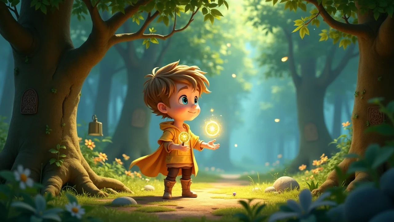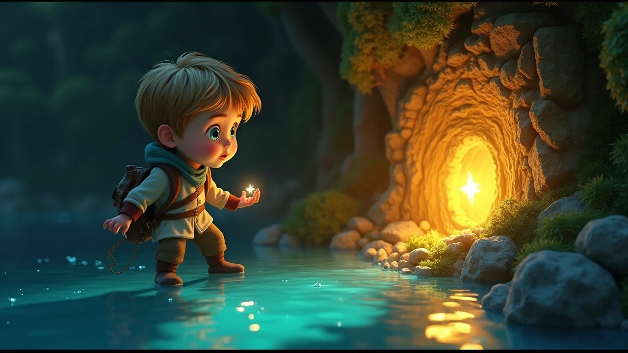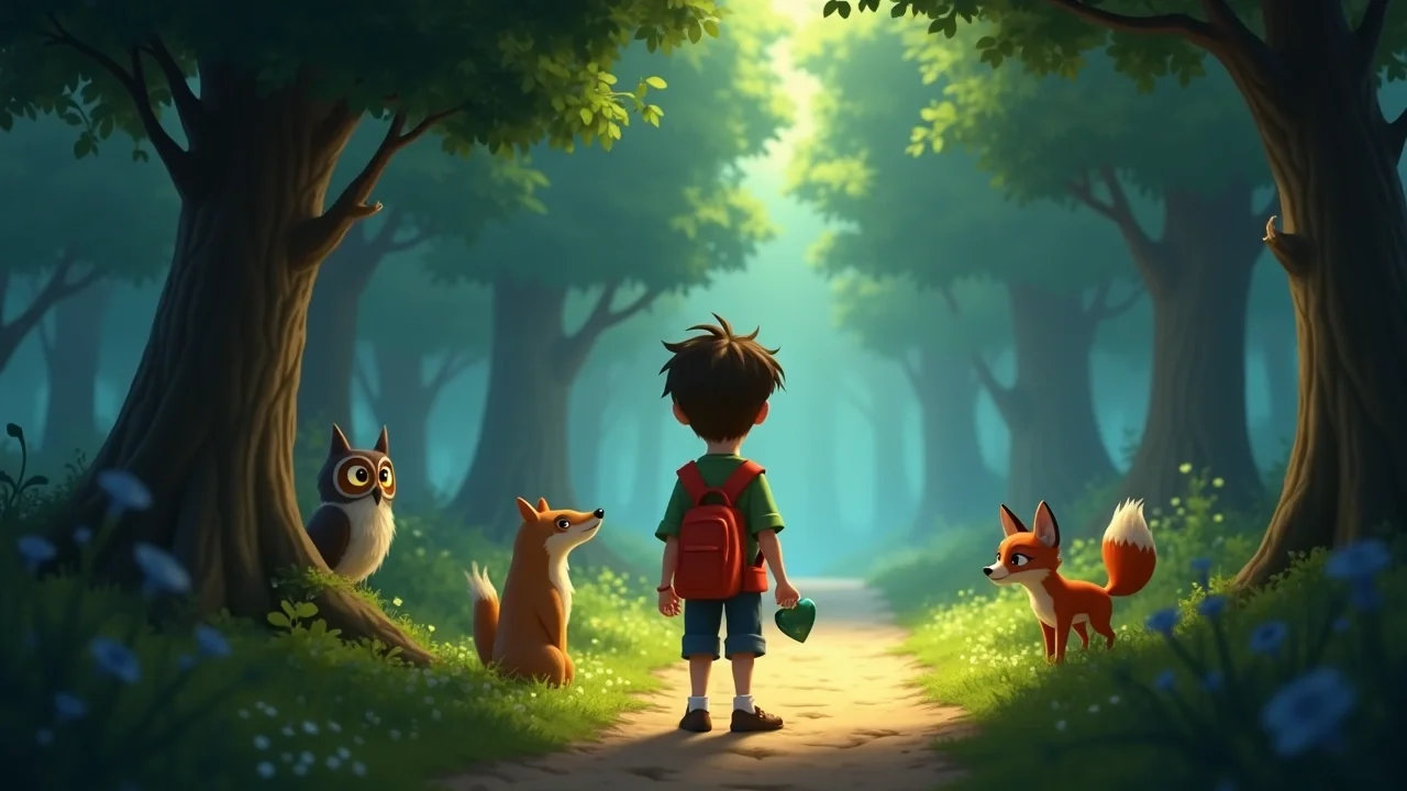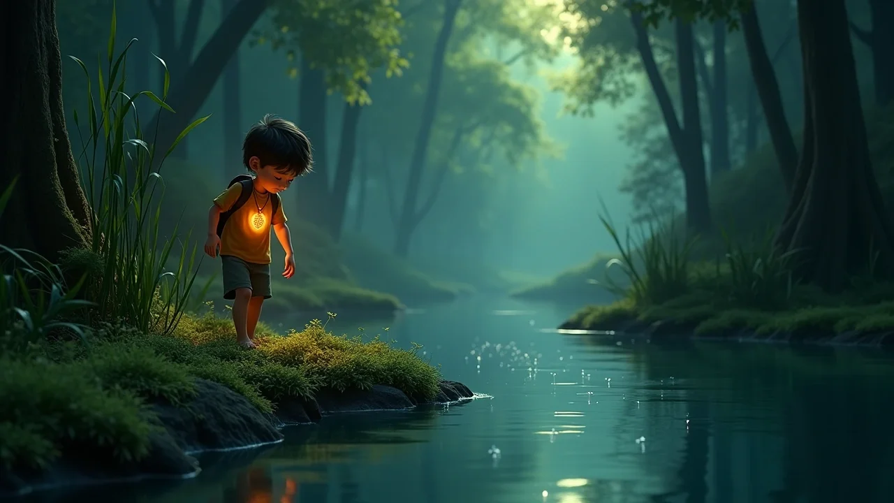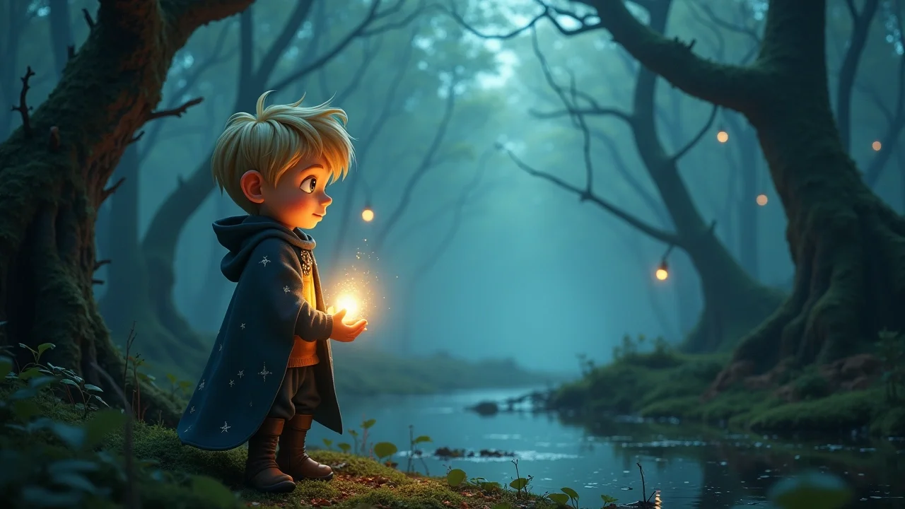 Страх перед темнотой, который обычно подкрадывался к Тимофею с наступлением вечера, вдруг отступил. Любопытство победило! Да и к тому же, камень в его руке нежно пульсировал теплом, а его "фонарик в сердце" лежал в кармашке, придавая уверенности. Он крепко сжал таинственный сияющий камень, взял поглубже вдох и, не раздумывая, шагнул вслед за искрой в темную чащу леса, туда, где обычные люди боялись и шагу ступить после захода солнца.