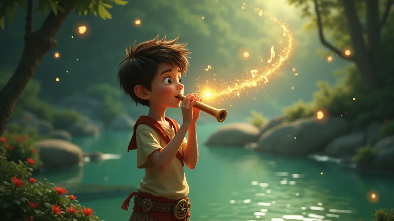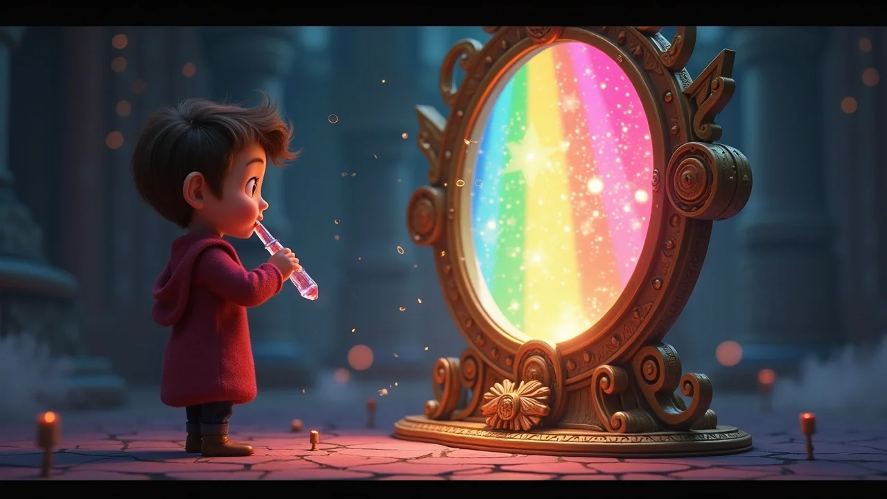 Сначала он увидел свой родной дом, где он беззаботно играл с матерью, потом Лесовика, дающего ему наставления, затем город-призрак, вновь наполненный жизнью благодаря Колокольчику Надежды. Но чем дольше он смотрел, тем темнее становились отражения. На гладкой поверхности стали появляться его страхи: момент, когда он потерял родителей, сомнения в своей способности справиться с заданием, ужас перед неизвестностью, что ждёт впереди. Отражения искривлялись, становились всё более угрожающими, и вода, казалось, начинала шептать его тайные опасения, стараясь погрузить его в пучину сомнений и тревоги.