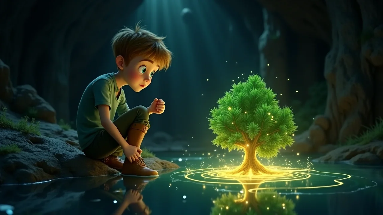 Тёмная энергия озера, похоже, действительно впитывалась в росток Вечной Ели, превращаясь в свет. Сама пещера будто наполнилась тихой, успокаивающей энергией. Страх отступил, уступив место теплу и покою. Росток Вечной Ели заметно подрос, и его тонкий ствол начал утолщаться, покрываясь мелкой, искрящейся корой. На его ветках стали пробиваться крошечные, но невероятно яркие хвоинки, мерцающие изумрудным светом. Озеро теперь отражало не страхи, а самые чистые и прекрасные воспоминания – его собственные и, возможно, воспоминания других, кто когда-либо проходил через эту пещеру и оставил здесь частичку себя.