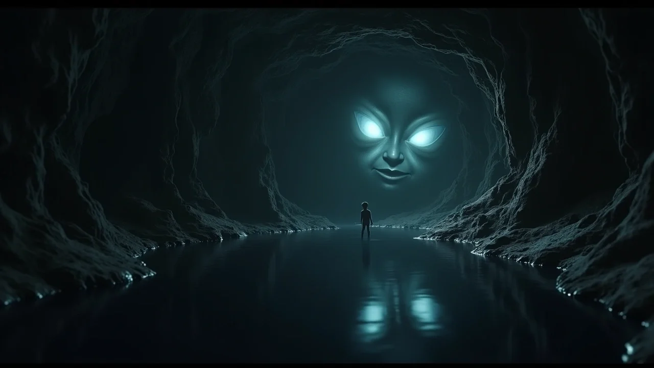 Через несколько часов, когда солнце уже начало склоняться к горизонту, окрашивая небо в пурпурные и оранжевые оттенки, Тимофей наткнулся на вход в обширную пещеру. Оттуда веяло холодом, и воздух внутри казался плотным, наполненным какой-то тяжёлой, давящей тишиной. От входа в глубины пещеры исходило тусклое, колеблющееся свечение, притягивая взгляд Тимофея. Пещера оказалась лабиринтом из проходов, уходящих в разные стороны. А в самой глубине, где свечение было наиболее интенсивным, находилось огромное озеро с идеально гладкой поверхностью. И что самое странное – вода в озере была абсолютно чёрной, словно жидкое зеркало, поглощающее весь свет.