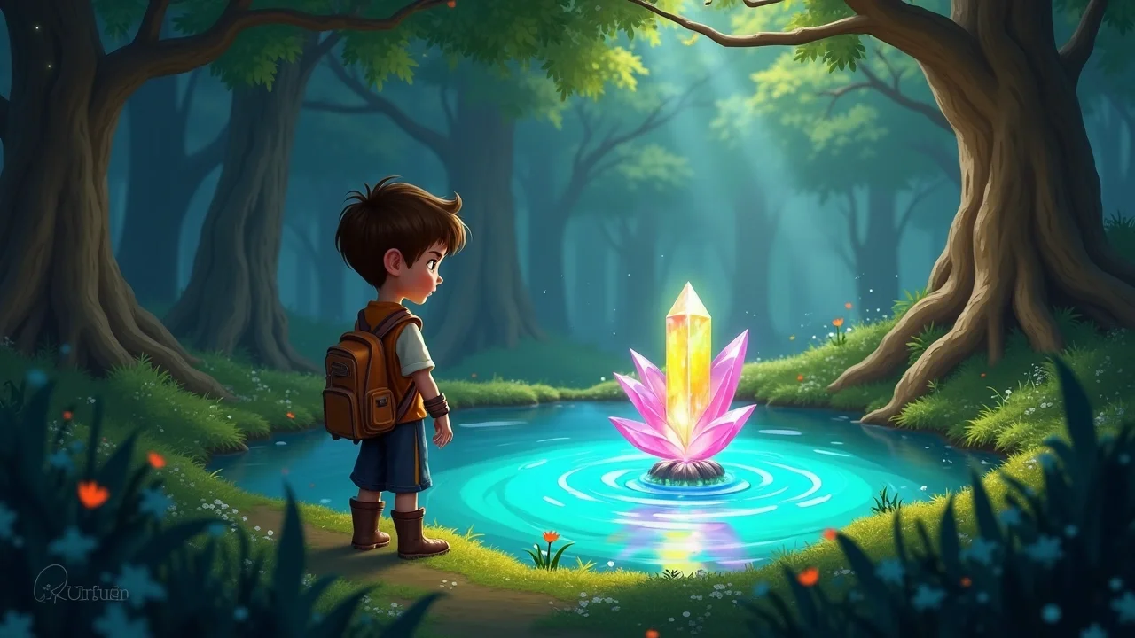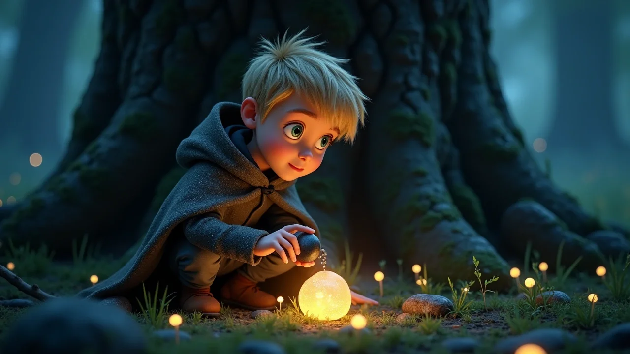 Он потянул за тоненькую травинку, что росла прямо над этим свечением, и земля поддалась. Там, в маленькой норке, глубоко среди корней, лежал ещё один камень. Но он был совсем не такой, как его "фонарик в сердце". Этот камень сиял нежным, приглушенным светом, словно вобрал в себя весь свет далёких звёзд. И от него шло не просто тепло, а словно отзывалось в груди нечто живое, таинственное и такое же древнее, как сам лес.