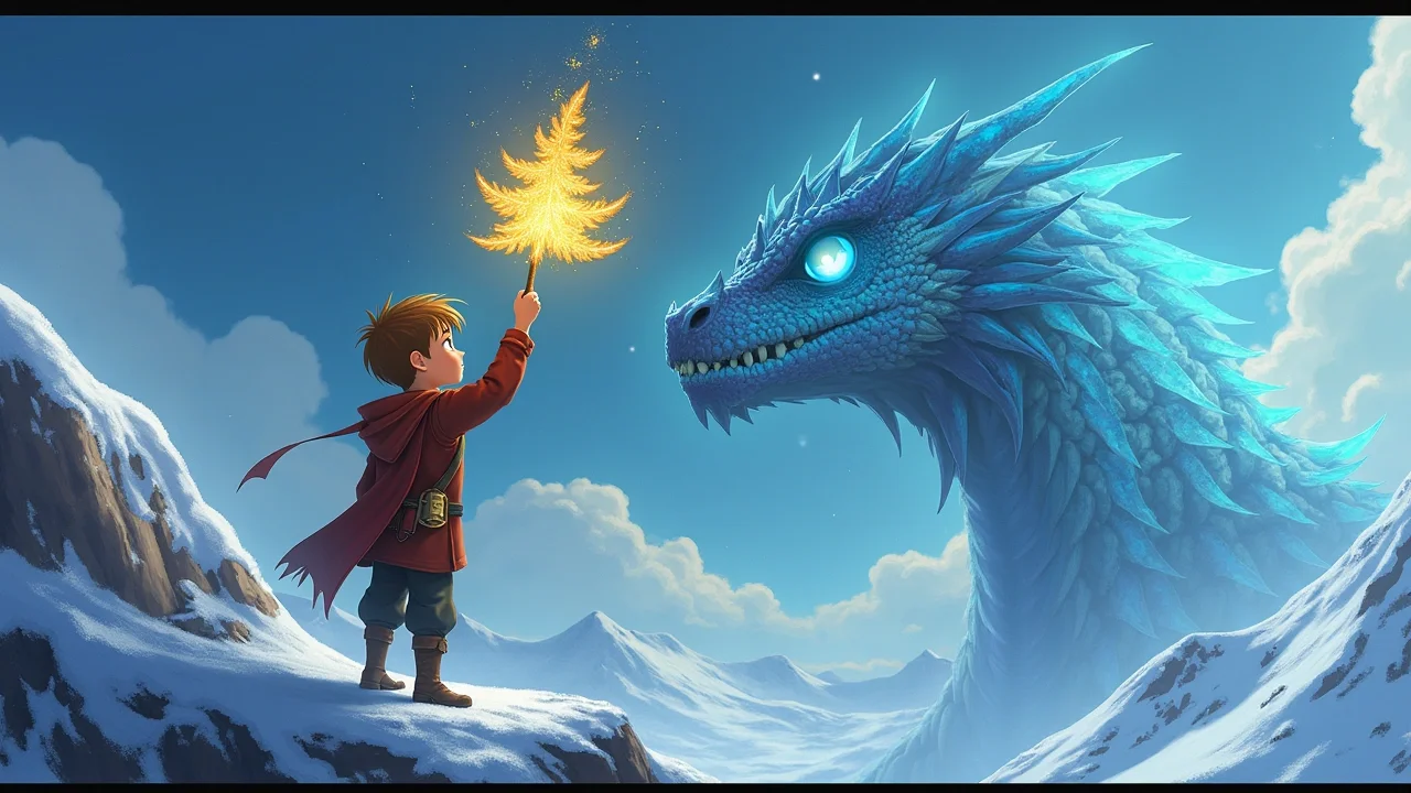 На вершине Дымящихся Гор, под грозным взором Дракона Зеркальных Грёз, Тимофей глубоко вдохнул. В его груди разгоралось пламя — это был «Свет Сердца Звезды», чистый, незамутнённый и искрящийся. Он вспомнил все наставления, каждое слово Лесовика, каждый миг своих приключений. Все собранные артефакты — Колокольчик Надежды, Кристалл Памяти, Шепот Звёзд и Росток Вечной Ели, теперь прочно укоренившийся в вечной мерзлоте вершины, словно маяки поддерживали его.