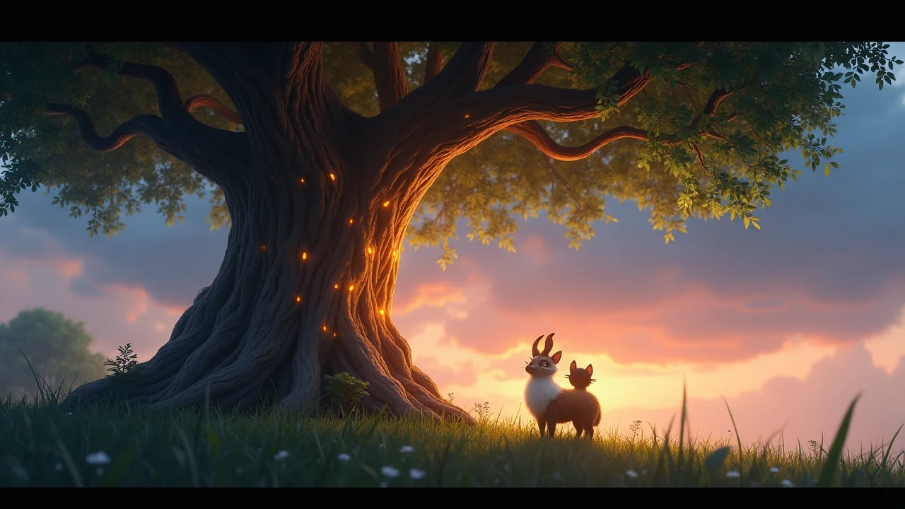 Когда последний луч зари исчез, из самой верхушки Дуба-Великана медленно спустился сверкающий, чуть заметный луч света. Он достиг земли прямо посреди звёздных цветов и коснулся самого большого и ярко сияющего бутона. Этот бутон мгновенно раскрылся, являя миру крошечный, изящный ключик, мерцающий всеми цветами радуги.