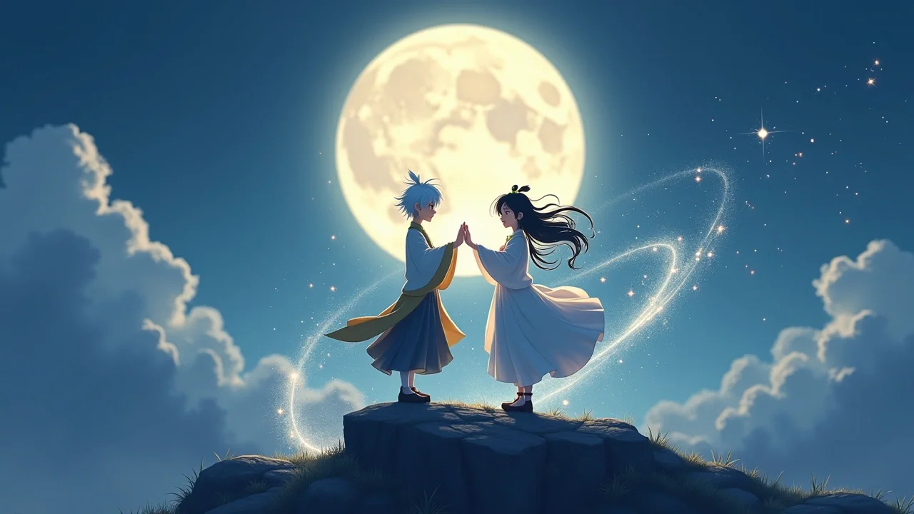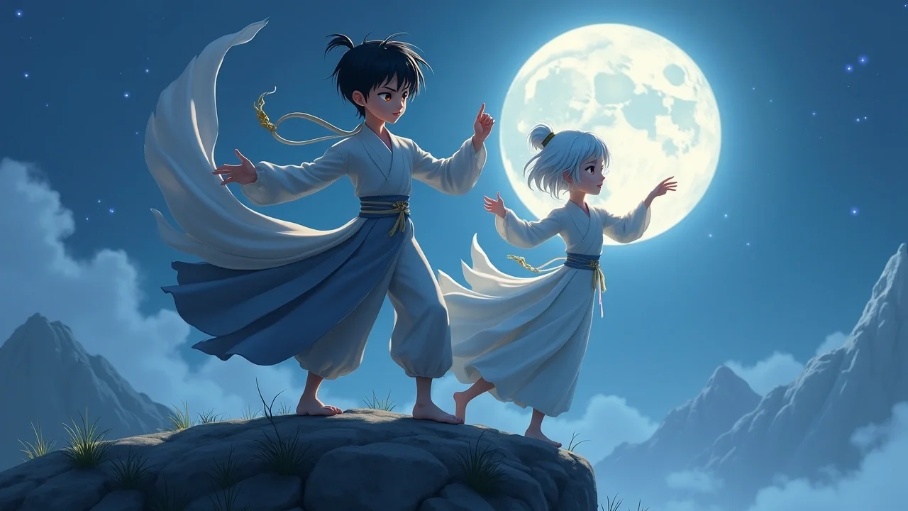 На небе появилась яркая луна, серебряным светом заливая окрестности. И тут он увидел его – Ли Шу. Юноша вышел на утес, одетый в легкие белые одежды, которые трепетали на ветру. Его короткие белые волосы казались почти невидимыми в лунном сиянии. Он неторопливо подошел к самому краю обрыва, остановившись лишь в нескольких шагах от пропасти, и поднял руки.