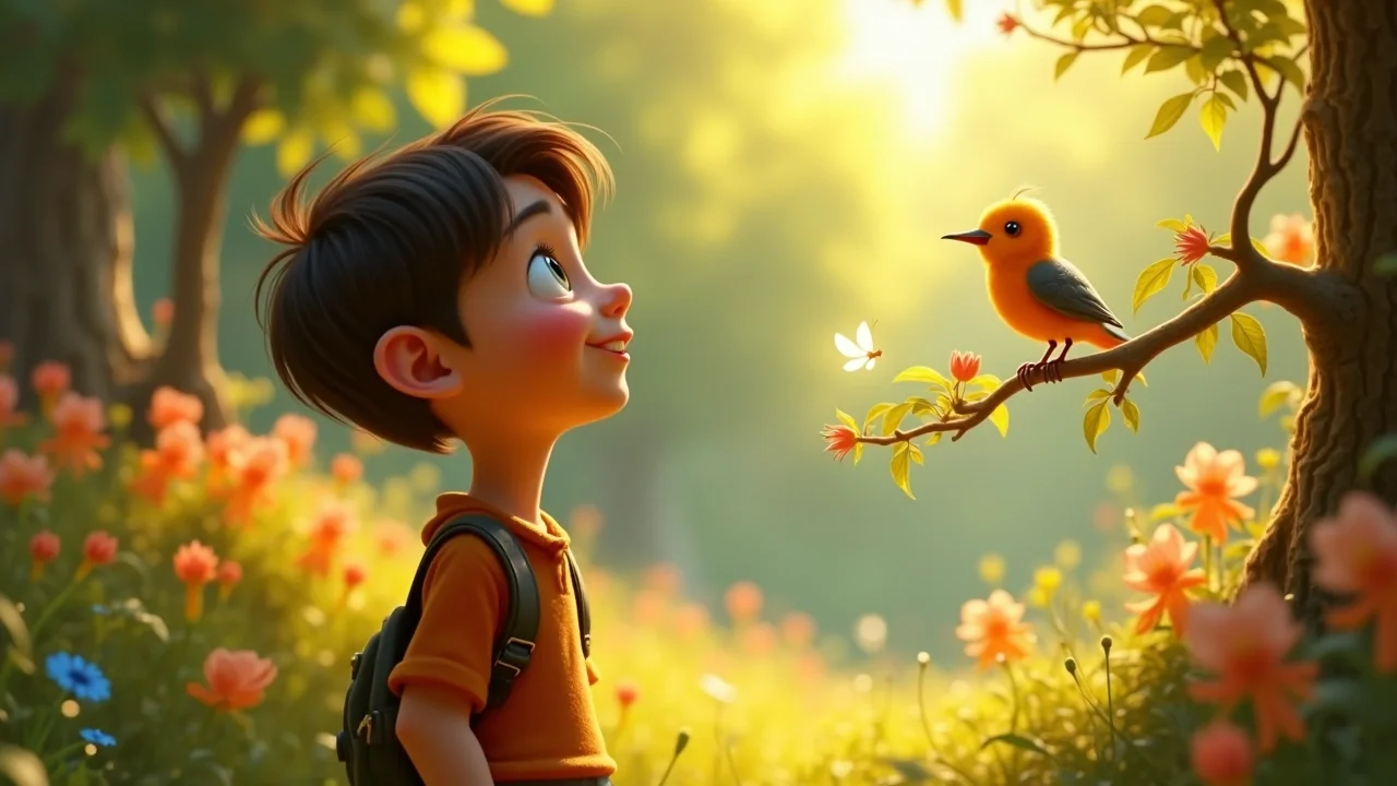 Лесенька, не теряя ни минуты, решительно направился к своей давней подруге – маленькой Певчей Птичке. Он знал, что её голос был самым мелодичным и чистым во всём лесу, способным растопить любое сердце и затронуть самые глубокие струны души. Найти её было несложно, ведь её звонкие трели часто разносились по всему Шепчущему Лесу, указывая на её любимую цветущую полянку, куда Лесенька часто приходил, чтобы поделиться своими секретами и просто послушать её удивительное пение.
