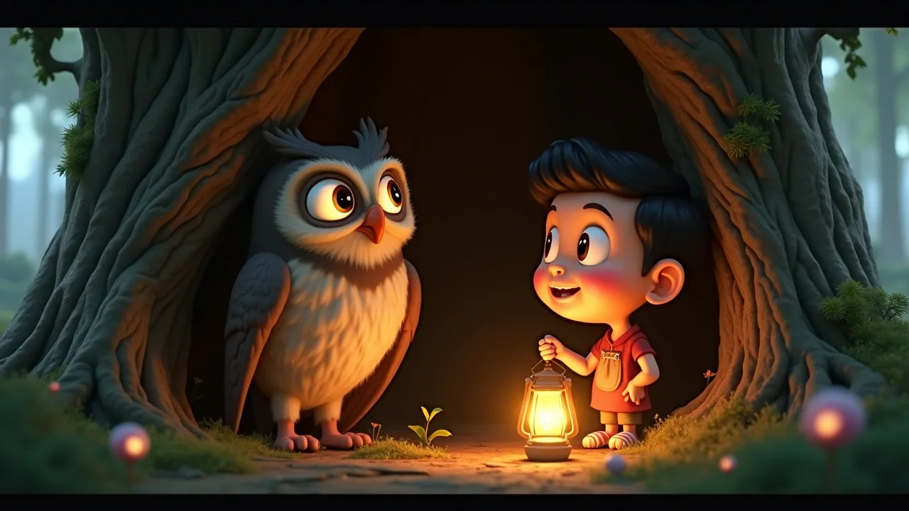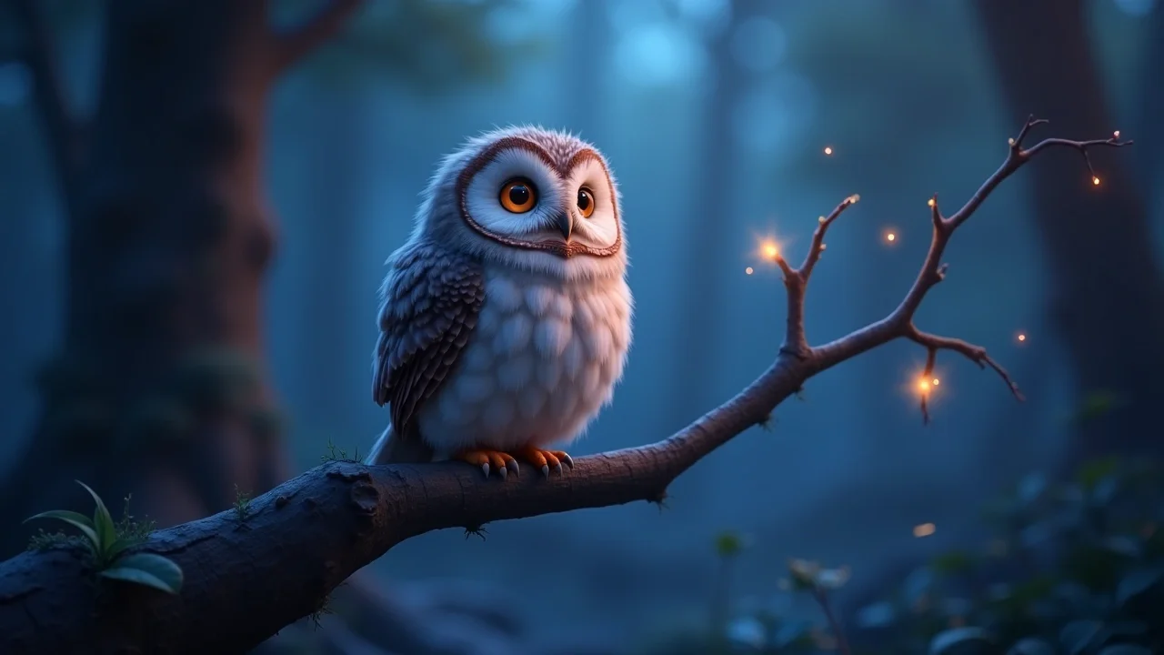 «Уха, Уха, Мудрая Сова!» – тихонько позвал Лесенька, когда пробрался сквозь занавес свисающих ветвей. Внутри было так уютно и тепло, пахло сухими травами и древними книгами. Лунный свет пробивался сквозь крохотное отверстие в потолке, освещая комнату мягким, приглушенным сиянием. Уха сидела на своей любимой ветке, ее большие янтарные глаза медленно открылись, рассматривая мальчика.