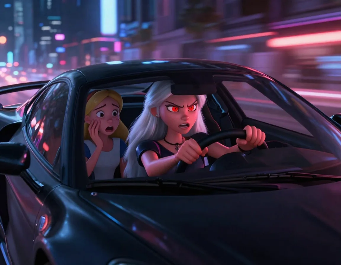 Афина буквально зашвырнула Элис на пассажирское сиденье и сама прыгнула за руль. Двери заблокировались с тяжёлым щелчком. Мотор взревел, как раненый зверь, и машина сорвалась с места, оставляя на асфальте жжёную резину. Афина переключала передачи с такой силой, будто хотела сломать рычаг.
