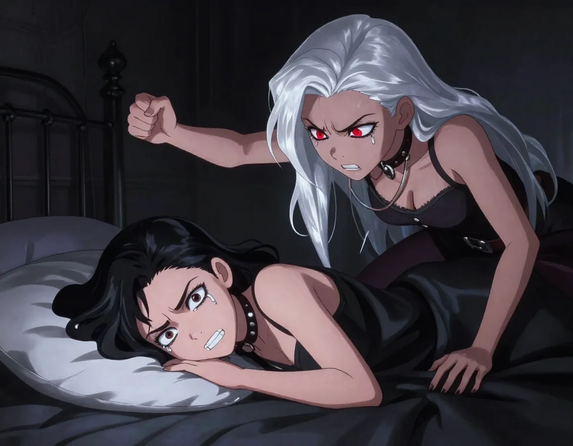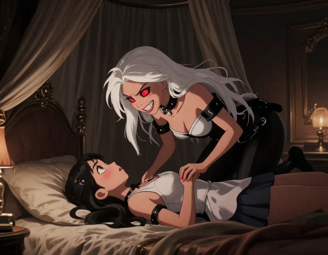 Элис продолжала извиваться, её пальцы царапали шёлк простыней, а в глазах горел огонь непокорности. Она была дочерью Торнов, она привыкла повелевать, и даже клыки Афины на её плече не заставили её сдаться. Она рванулась всем телом, пытаясь сбросить с себя беловолосую бестию, её дыхание было прерывистым и горячим.