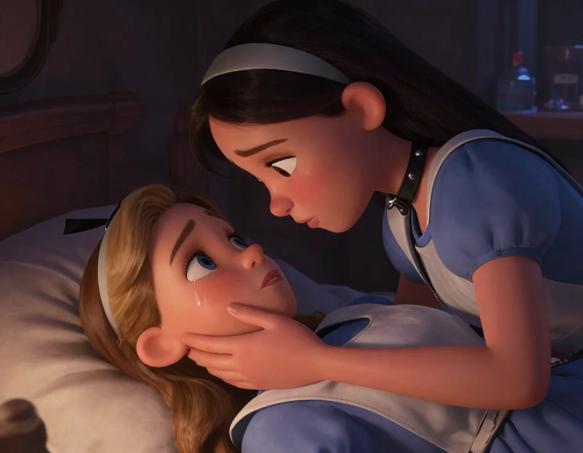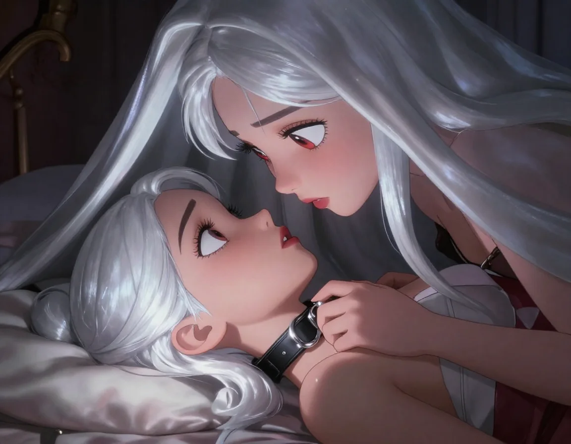 Элис лежала, тяжело дыша, её пальцы всё ещё дрожали, когда она медленно подняла руку и коснулась прохладной кожи под чёрным ремешком на шее Афины. Она видела, как расширились зрачки воительницы, как та замерла, ожидая, что Элис сейчас расстегнёт пряжку и вернёт ей свободу после этой бурной ночи.