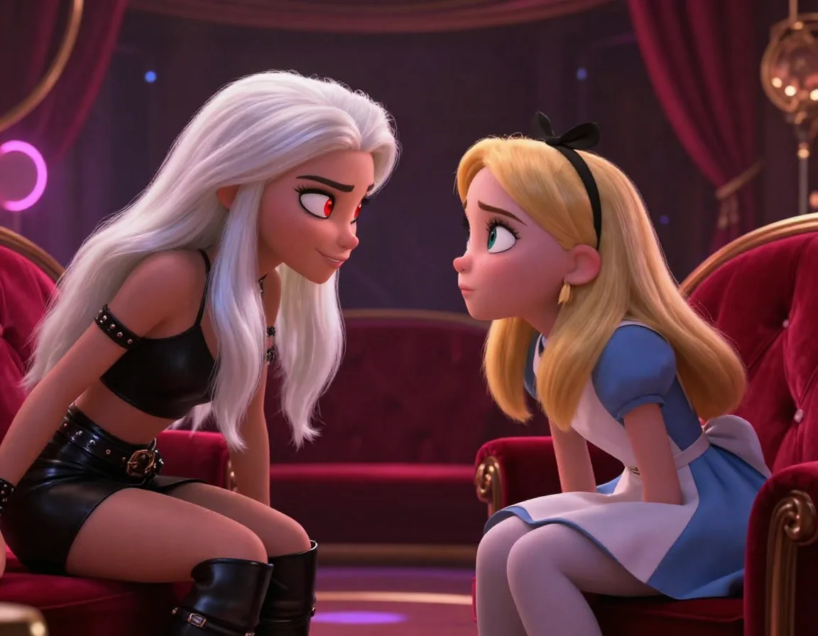 Элис села на край дивана, не расслабляясь ни на секунду. Она выглядела как ангел, случайно попавший в ад, но в её взгляде не было страха — только жгучее любопытство.