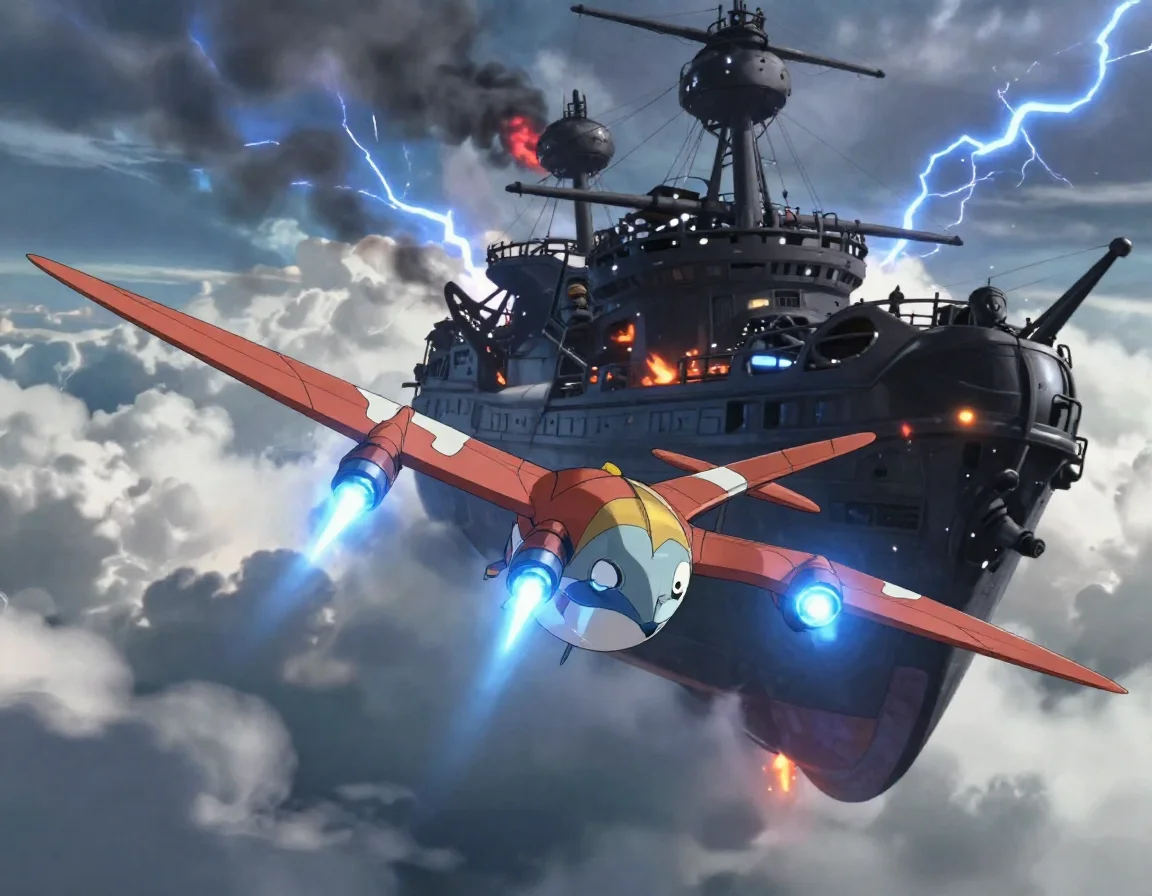 — Это не мощь пушек, это сила дружбы и капелька инженерного гения! — прошептала Аири, закладывая крутой вираж.