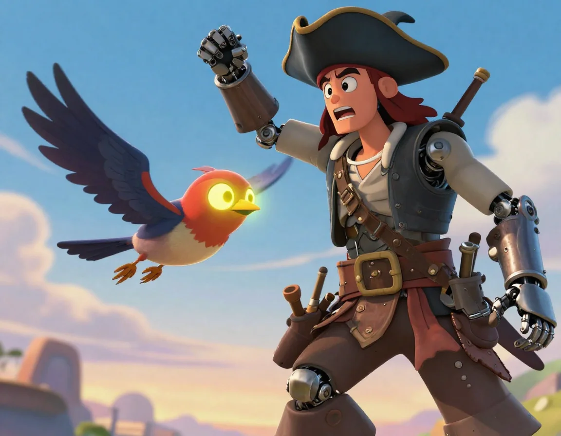 Морган прищурился. Его механический глаз зажужжал, фокусируя линзу на лице девочки. Он медленно подошёл к верстаку, под которым скрывался люк. Аири затаила дыхание. В этот момент Болт внезапно спикировал с потолочной балки прямо на голову капитана, отвлекая его внимание искрами и коротким замыканием.