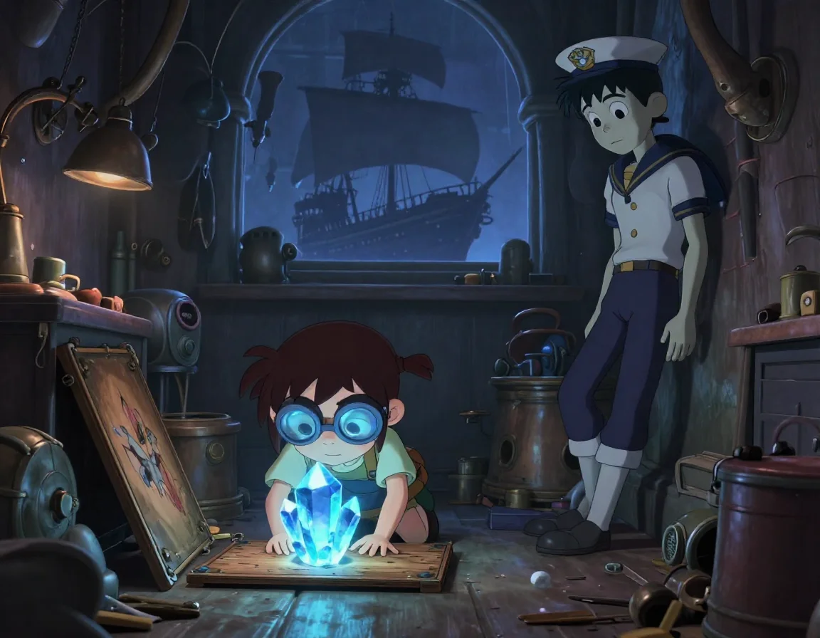 Они пробирались сквозь пар, слыша ругань пиратов и лязг металла. Кай споткнулся, и кристалл на мгновение коснулся одной из медных труб. По всей системе мастерской пробежала волна лазурной энергии. Внезапно все механизмы — даже те, что годами стояли сломанными — начали вращаться с невероятной скоростью. Мастерская буквально оживала под воздействием силы Небесного Кристалла.