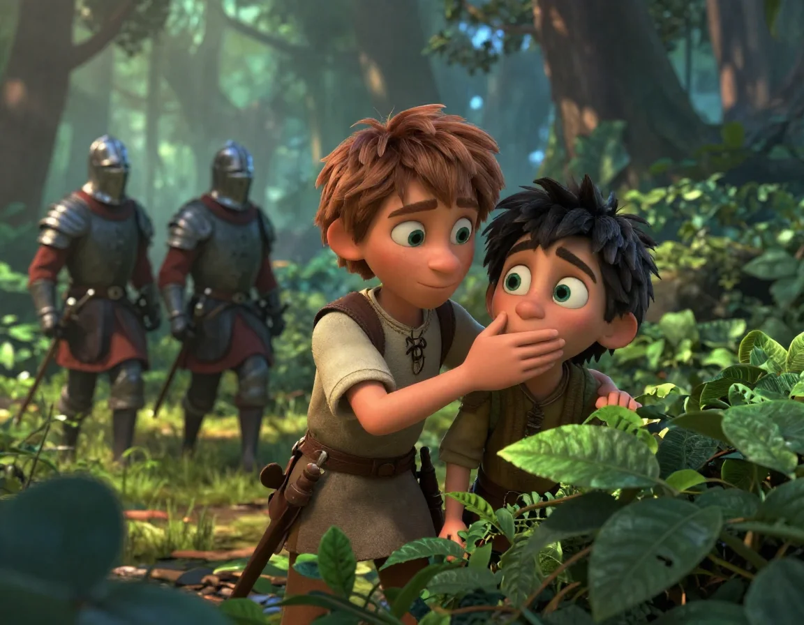 Лес шелестел над головами мальчиков, словно само мироздание затаило дыхание. Мирослав чувствовал, как бешено колотится сердце Гришки под его ладонью, и это ощущение единства в опасности было острее любого дворцового празднества. Когда шаги стражников затихли, царевич медленно убрал руку. Его пальцы всё ещё хранили тепло чужого лица.