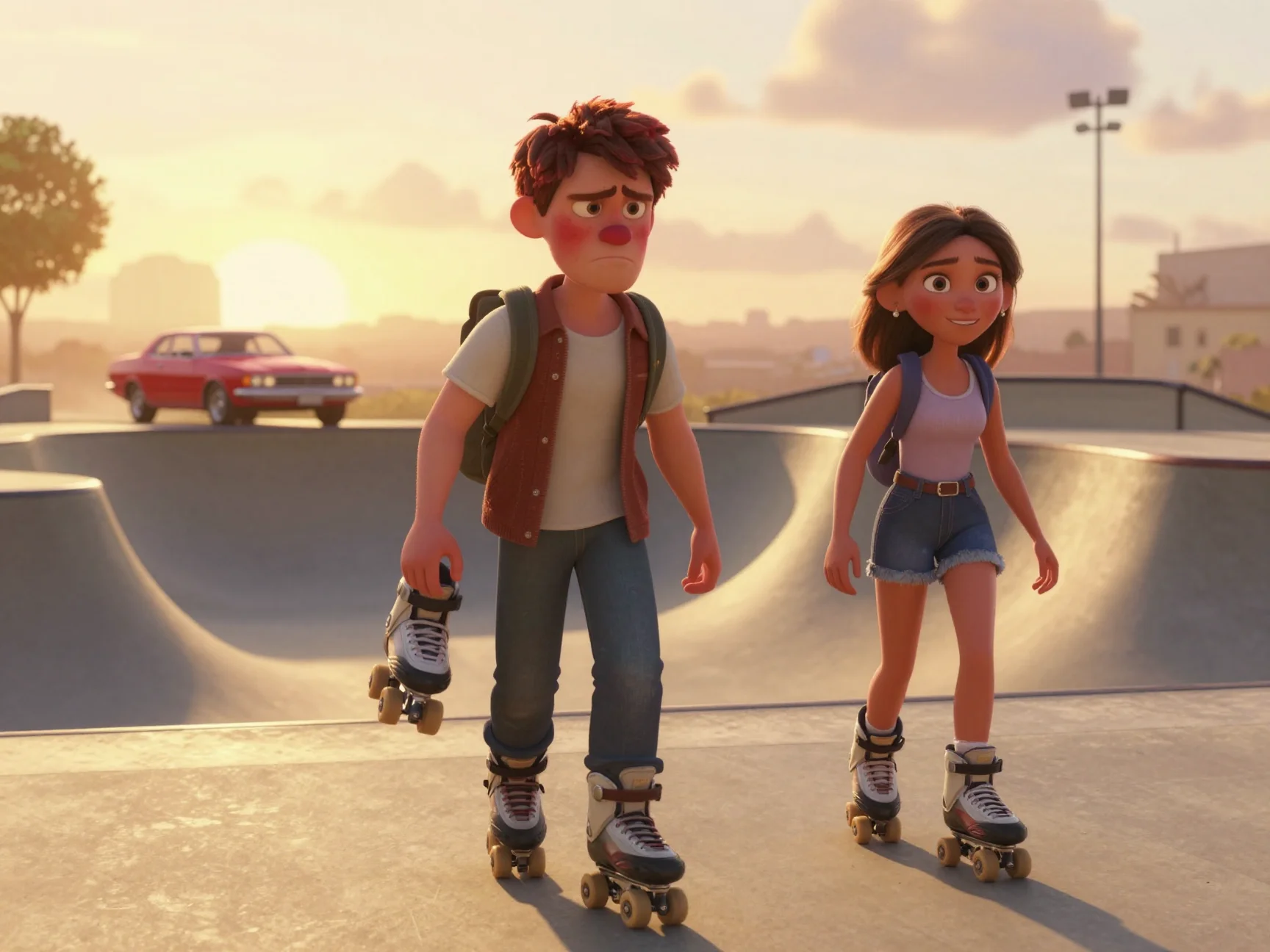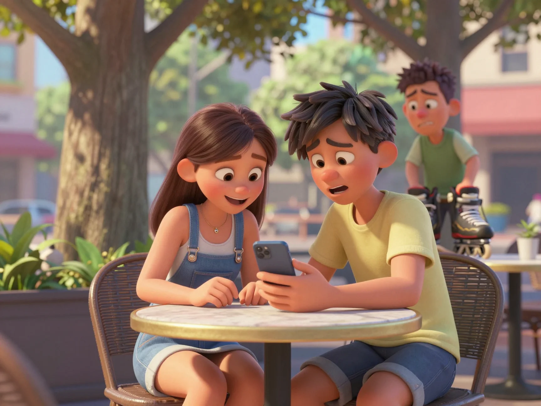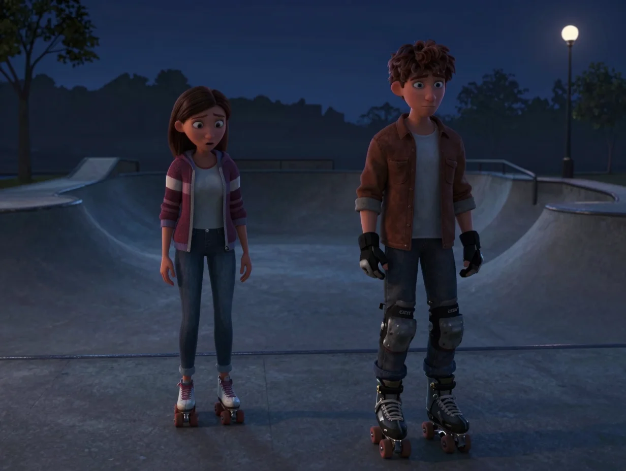 Вдруг из-за угла послышался резкий свист и топот. Группа подростков на самокатах пронеслась мимо, едва не задев её коляску. Один из них обернулся — это был парень из компании Эмили.