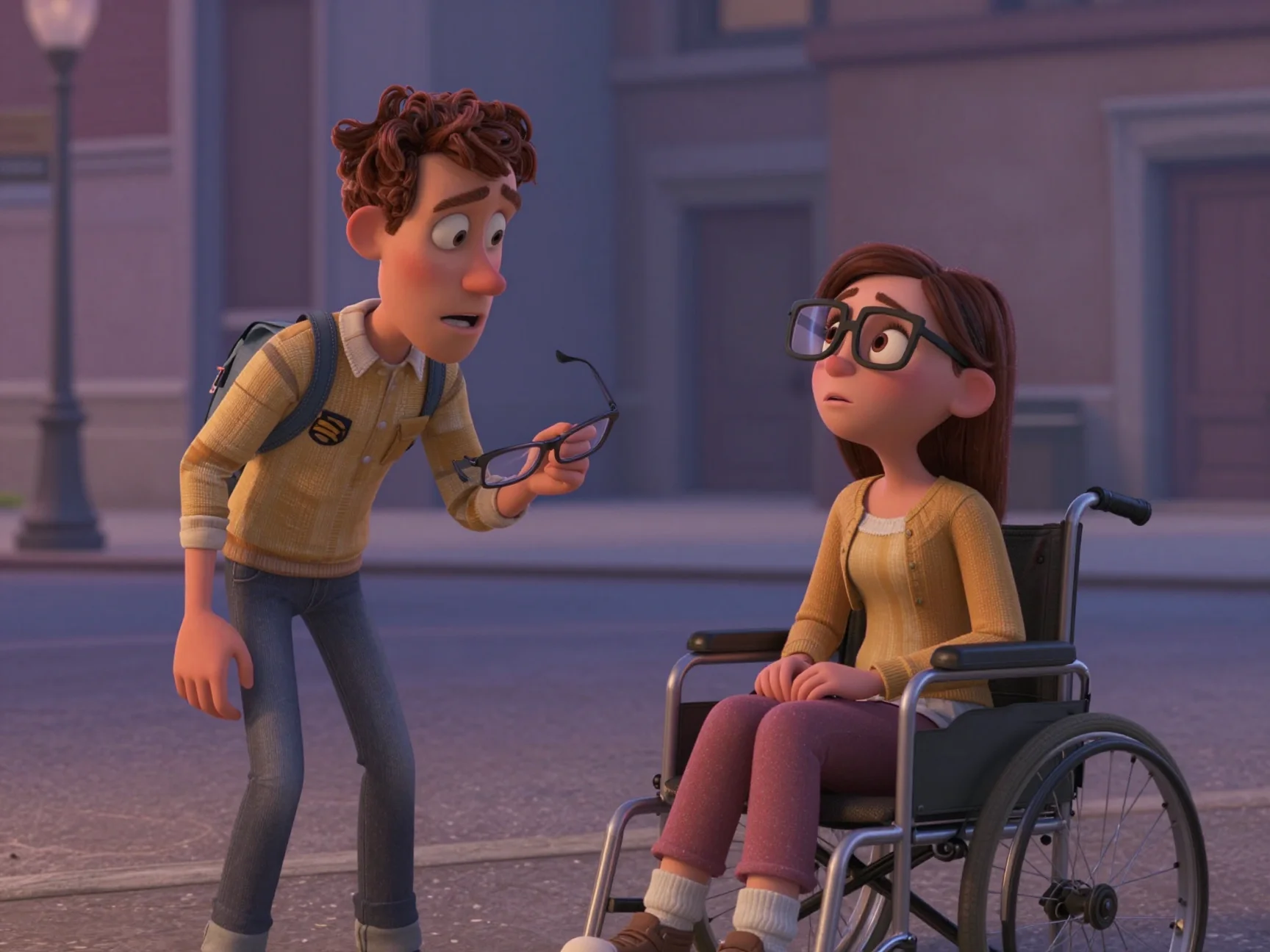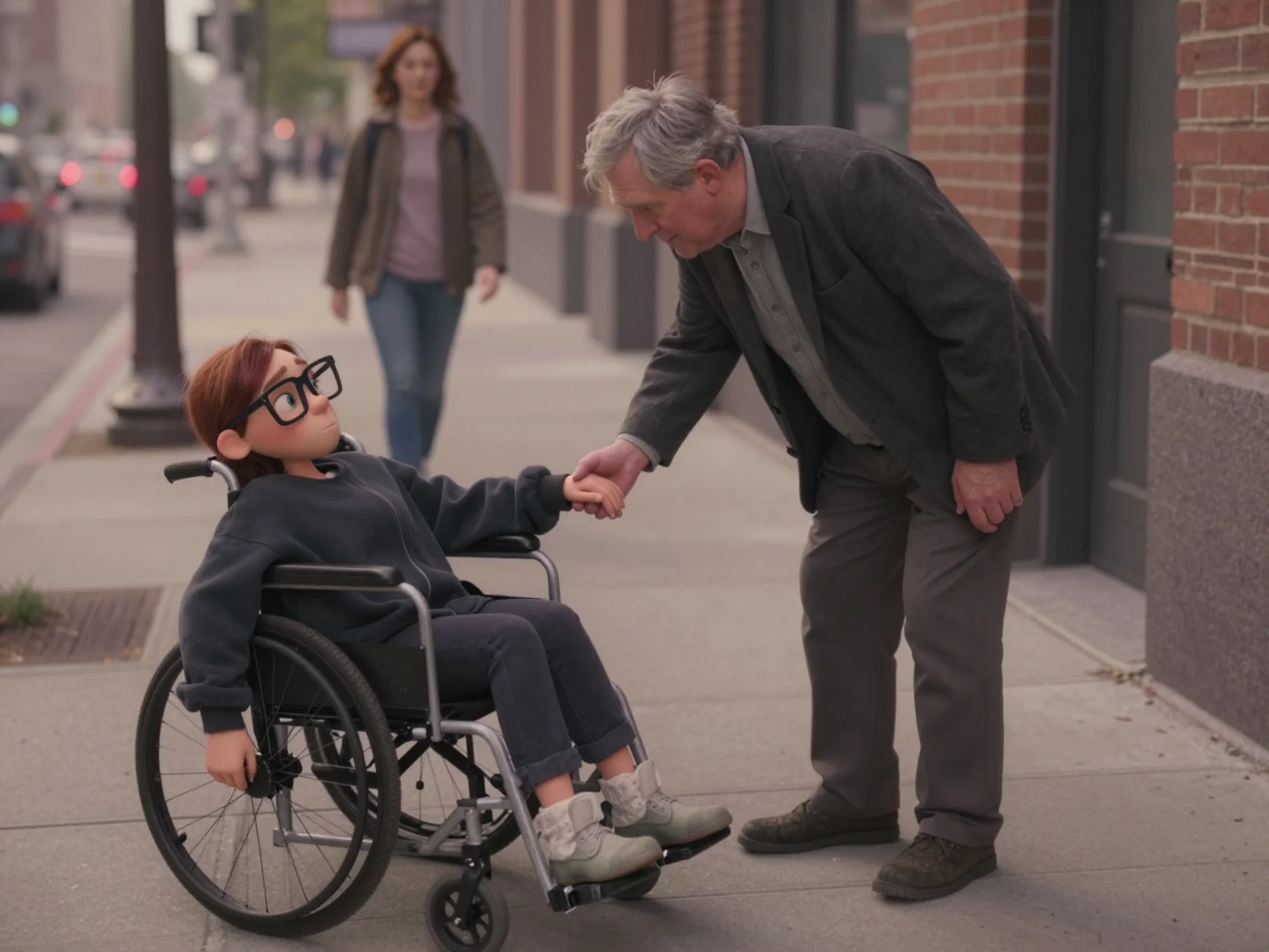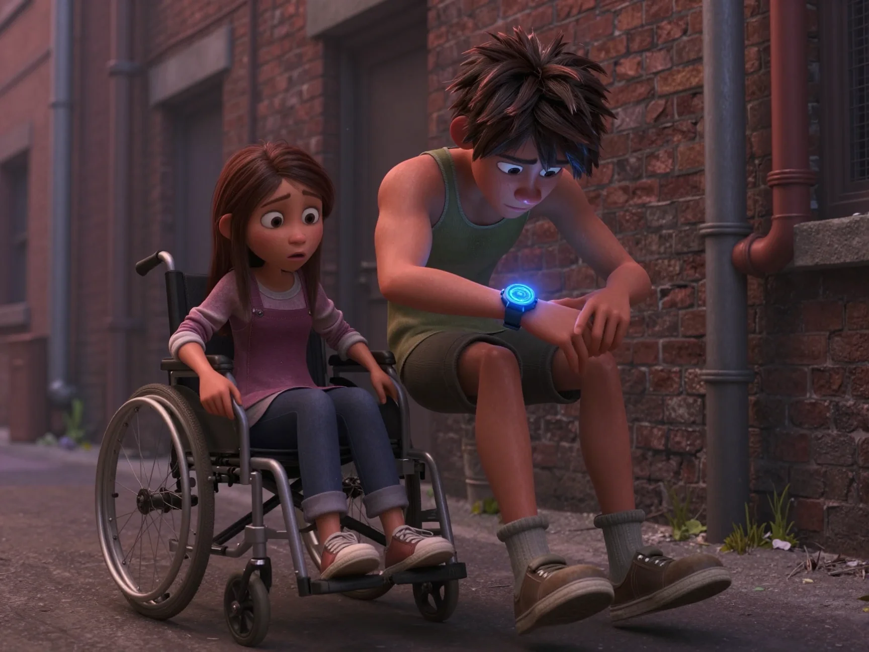 Экран телефона погас, а вместе с ним, казалось, погас и весь мир. Нора сидела в своей коляске посреди пустынного переулка, чувствуя, как слёзы смешиваются с дорожной пылью на её щеках. Она была одна. Брошенная, некрасивая и запертая в собственном теле. Она бесцельно крутила колёса, двигаясь вглубь промзоны, не заботясь о том, куда приедет.
