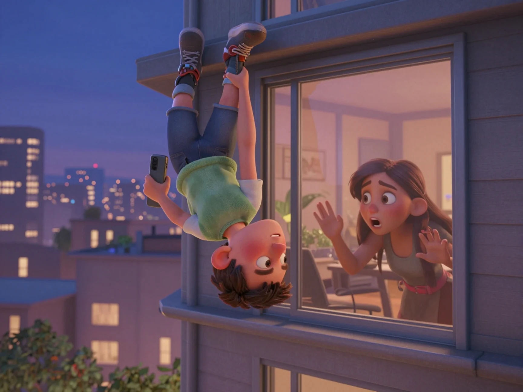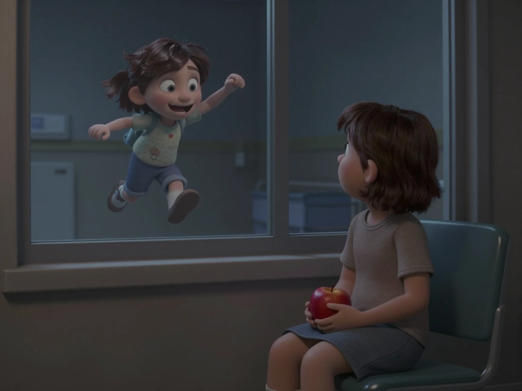— Прости ещё раз, пухляш! Если что-то сломалось в кресле — найди меня в парке завтра, я починю! — И прежде чем она успела вымолвить хоть слово, он оттолкнулся от земли, взлетел на мусорный бак, а оттуда — на пожарную лестницу, исчезая в вышине за считанные секунды.