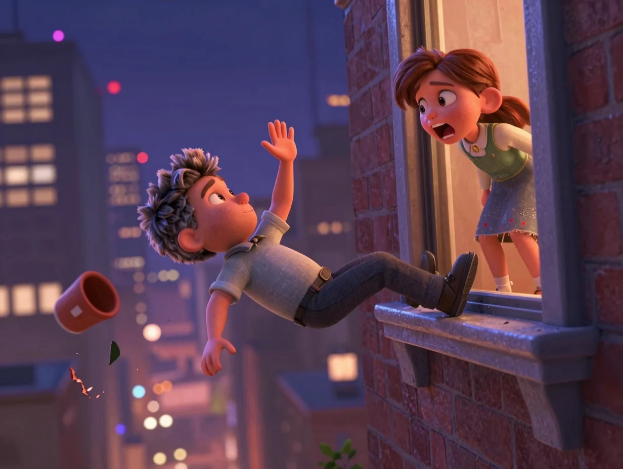 Тишина на балконе стала невыносимой, и Кори решил её взорвать. Он внезапно вскочил на перила, подмигнул Норе и, совершив безупречное заднее сальто, исчез в темноте. Нора вскрикнула, бросившись к краю, но увидела его внизу — он стоял на мягком газоне, раскинув руки.