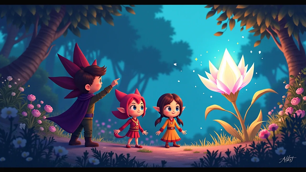 «Вот это да! – ахнула Лиза, пытаясь рассмотреть далёкие, еле заметные водопады из света, стекающие в искрящиеся пруды. – Но как мы найдём здесь хранителя? Этот сад кажется бесконечным!»