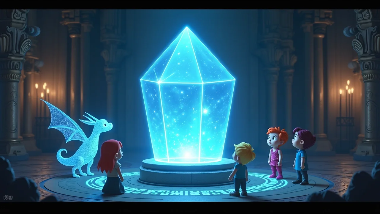 Когда каждый из них произнёс свои слова, зеркало засияло ещё ярче, и из его глубины медленно выплыл маленький, переливающийся осколок, похожий на кристалл. Он был прозрачным, но внутри него мерцали все оттенки их общей истории. «Это первый осколок, осколок Единства», — торжественно произнёс Кодус. — «Он свидетельствует о силе вашей дружбы и общего пути. Теперь вам предстоит искать остальные».