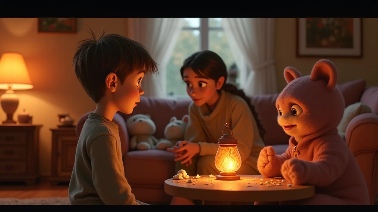 Медвежонок Плюш вдруг, будто случайно, покачнулся и уронил маленький блестящий камешек, который держал в лапке. Камешек покатился прямо к Тени, и она, словно испугавшись чего-то яркого, поспешно отползла обратно за комод. «Плюш всегда умеет подсказать, когда надо прогнать плохое», – подумал Серёжа. – «Но что же мне делать? Как починить Луч-озорник, чтобы он снова светил для добрых снов?» Серёжа так крепко прижимал к себе фонарик, что почти почувствовал биение крошечных светлячковых сердечек внутри него. Он знал, что должен найти решение, ведь от этого зависели не только его сны, но и улыбка мамы. Он закрыл глаза, представляя, как светлячки смотрят на него, и ему захотелось сделать что-то очень-очень хорошее, чтобы вернуть им их потерянный свет. Но что, если правда будет слишком горькой?