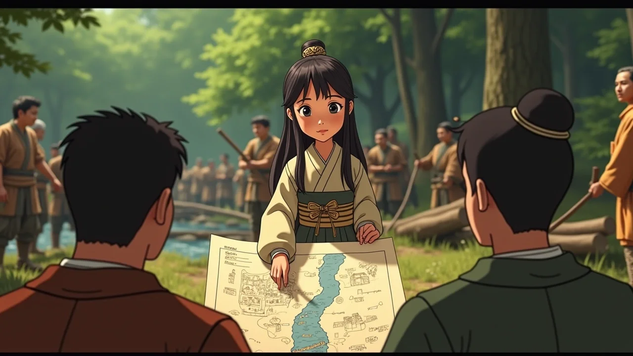 Юкико же осталась с основным войском. Теперь её главной задачей было разработать план отвлечения, который позволил бы её отряду проникнуть в крепость через туннель, пока внимание Орочи будет приковано к другому месту. Она разложила на земле карту, нарисованную разведчиками, и начала внимательно её изучать. Вокруг неё собрались остальные воины, готовые слушать и помогать.