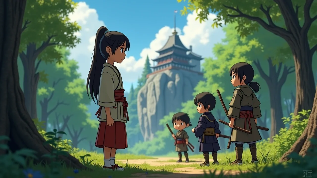 Солнце, едва пробиваясь сквозь густую крону деревьев, рисовало на земле причудливые узоры из света и тени. Воздух был влажным и тяжёлым, наполненным запахом мха, прелой листвы и чем-то ещё, неуловимым, но тревожным. Юкико крепко сжимала рукоять своего вакидзаси – короткого самурайского меча, который отец подарил ей на десятилетие. Он был не просто оружием, а символом её рода, напоминанием о долге и чести.