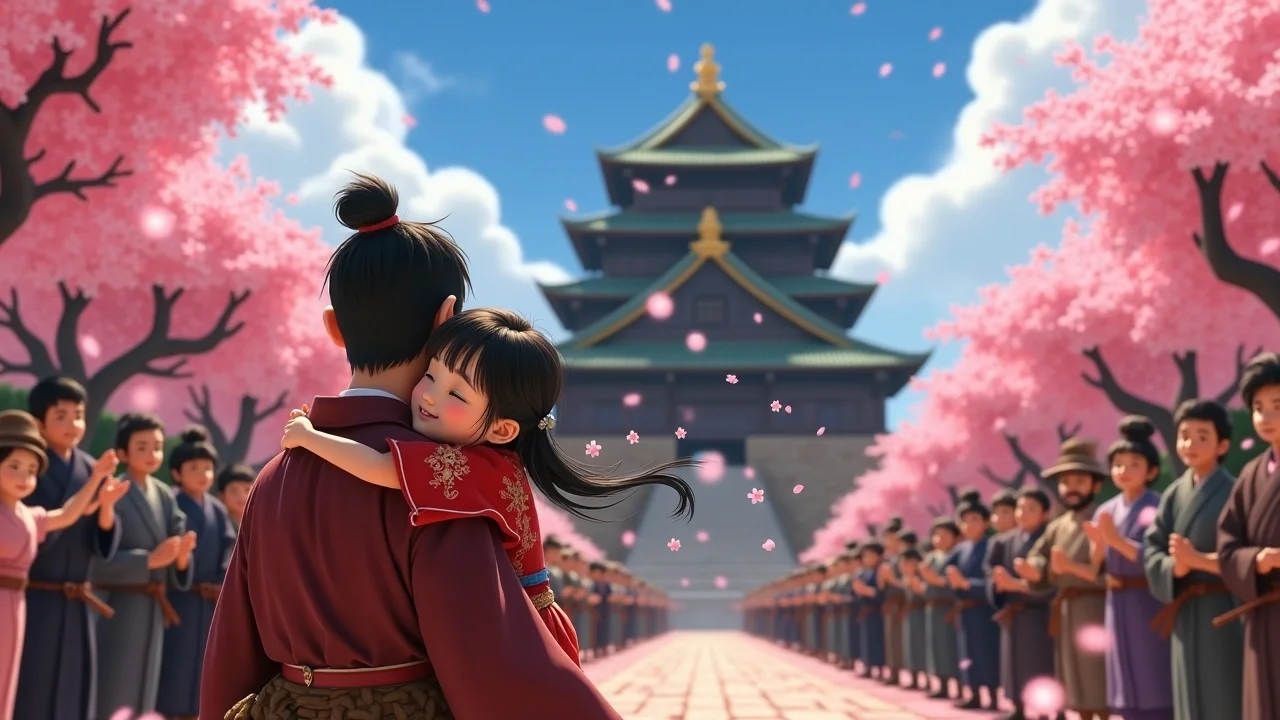 Когда отряд приблизился к землям клана Сакуры, их уже ждала огромная толпа. Отец Юкико, старый, но гордый самурай, стоял во главе встречающих, его глаза были полны слёз радости и гордости. Рядом с ним стояли старейшины клана, матери, дети – все, кто ждал их возвращения. Когда Юкико, уставшая, но сияющая, спешилась с коня, отец крепко обнял её. «Моя дочь, моя храбрая сакура, ты вернула честь нашему клану. Ты – истинный лидер!» – прошептал он.
