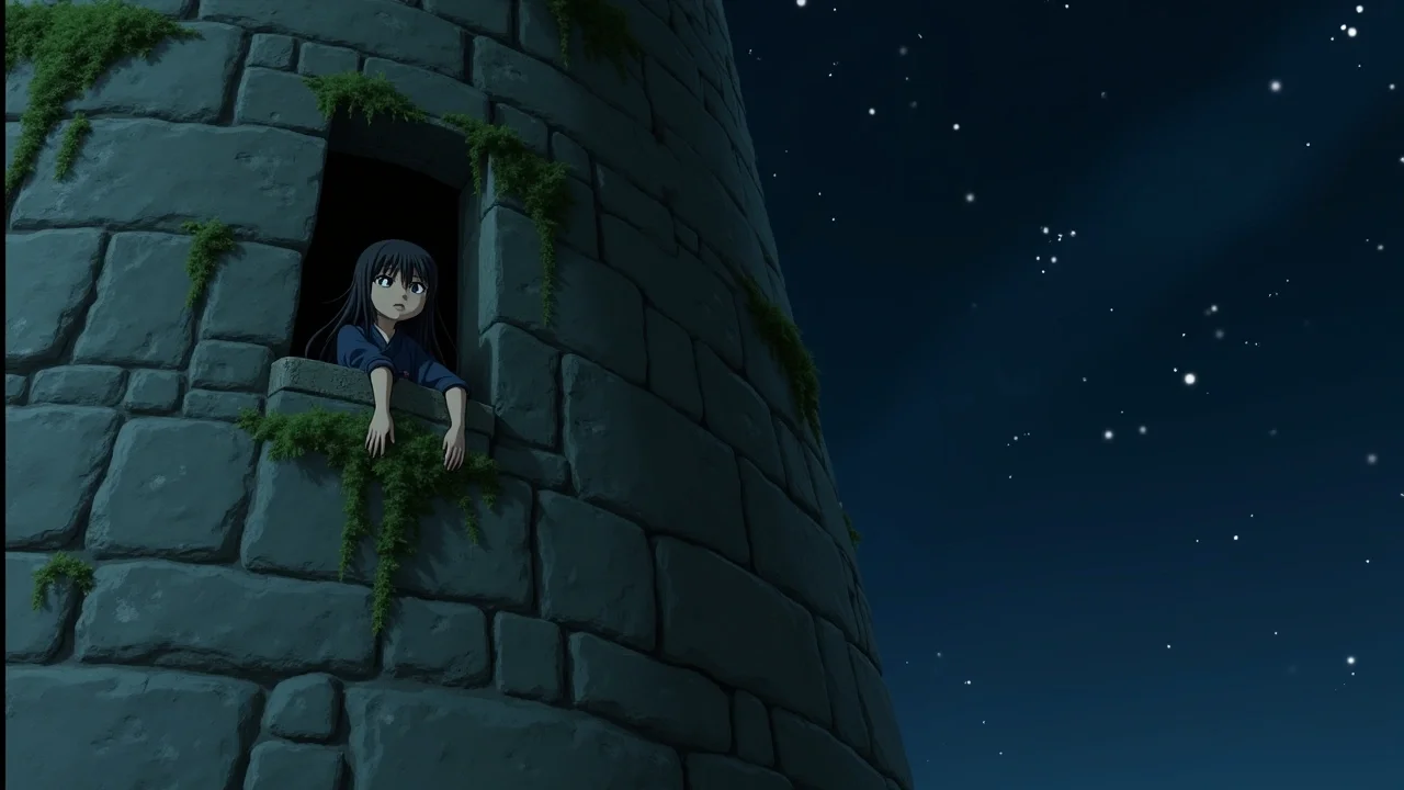 Подъём казался бесконечным. Она чувствовала, как мышцы напрягаются, но решимость не покидала её. Наконец, она достигла небольшого окна, расположенного высоко над землёй, которое, судя по всему, вело в одну из комнат башни. Окно было закрыто, но не заперто. С помощью Зеркального Меча, который она осторожно использовала как рычаг, Юкико бесшумно приоткрыла ставни и проскользнула внутрь.