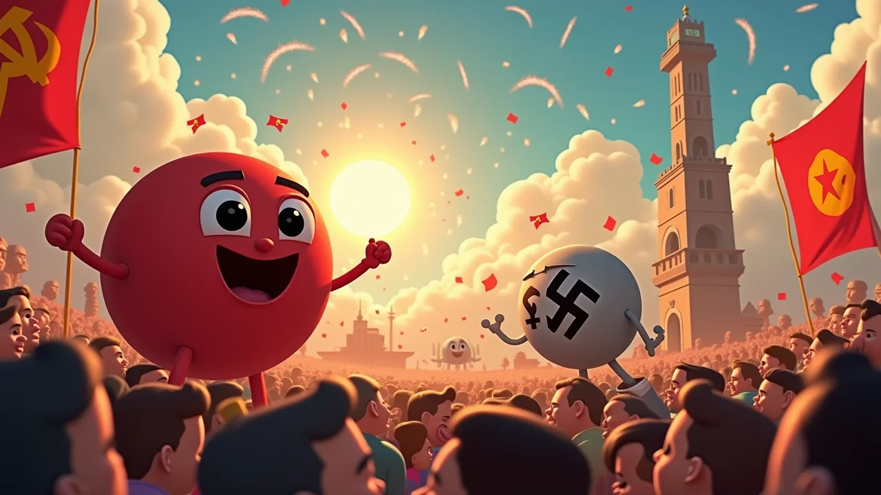 Нацистская Германия-шарик, полностью разгромленная, истощённая и потерявшая всякую надежду на победу, была вынуждена признать своё поражение. Её лидеры-шарики либо покончили с собой, либо были схвачены. И вот, наступил тот самый день, который навсегда вошёл в историю.